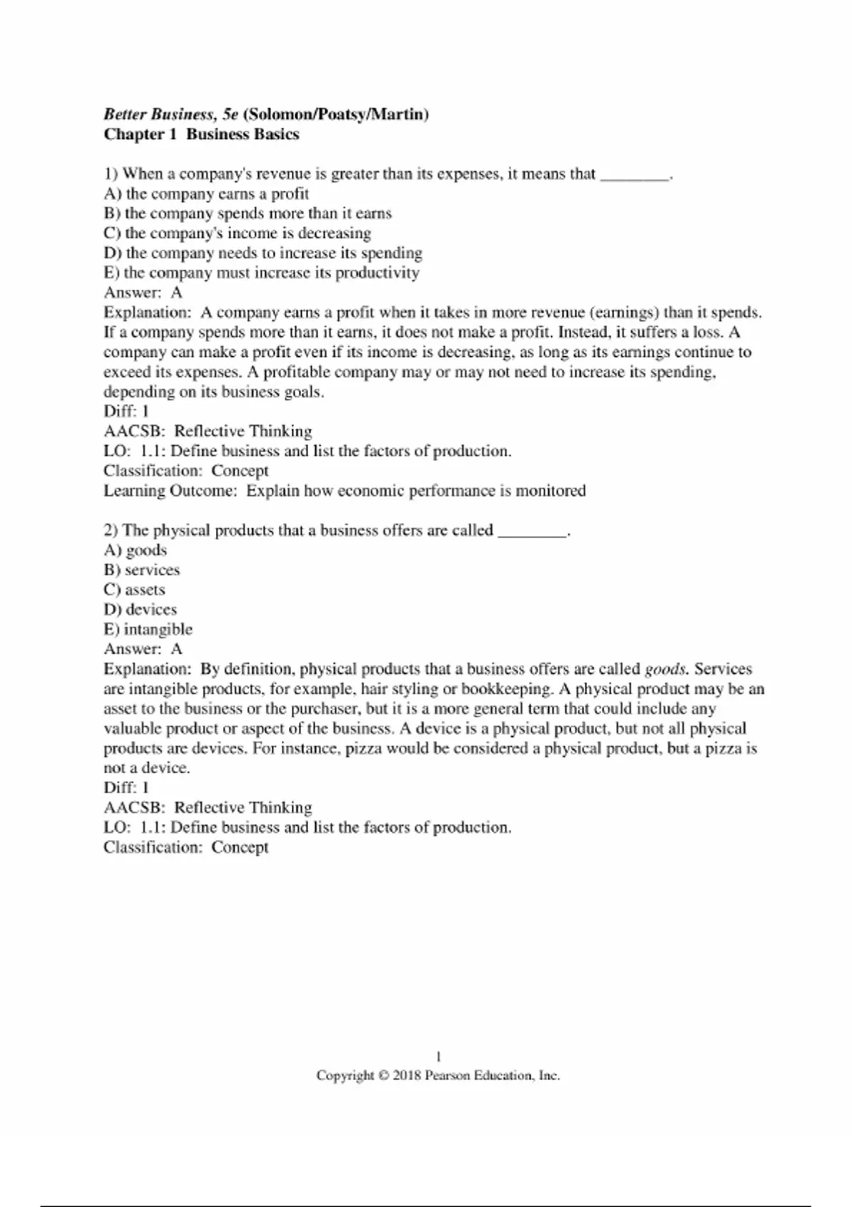 The Test Bank for Better Business, 5th Edition by Michael R. Solomon, Mary Anne Poatsy, and Kendall Martin provides a full suite of assessment items aligned exactly with the verified Table of Contents of the textbook. It includes multiple-choice, true/false, short-answer, matching, and scenario-based questions to evaluate comprehension, critical thinking, application, and integration of business concepts. This resource supports instructors in developing quizzes, midterms, finals, and assignments that reflect both foundational business principles and current issues in the business environment. The assessment content follows every chapter in the text: Chapter 1: Business Basics, Chapter 2: Economics and Banking, Chapter 3: Ethics in Business, Chapter 4: Business in a Global Economy, Chapter 5: Small Business and the Entrepreneur, Chapter 6: Forms of Business Ownership, Chapter 7: Business Management and Organization, Chapter 8: Motivation, Leadership, and Teamwork, Chapter 9: Human Resource Management, Chapter 10: Online Business and Technology, Chapter 11: Production, Operations, and Supply Chain Management, Chapter 12: Marketing and Consumer Behavior, Chapter 13: Product Development, Branding, and Pricing Strategies, Chapter 14: Promotion and Distribution, Chapter 15: Financing and Accounting for Business Operations, and Chapter 16: Investment Opportunities in the Securities Market.