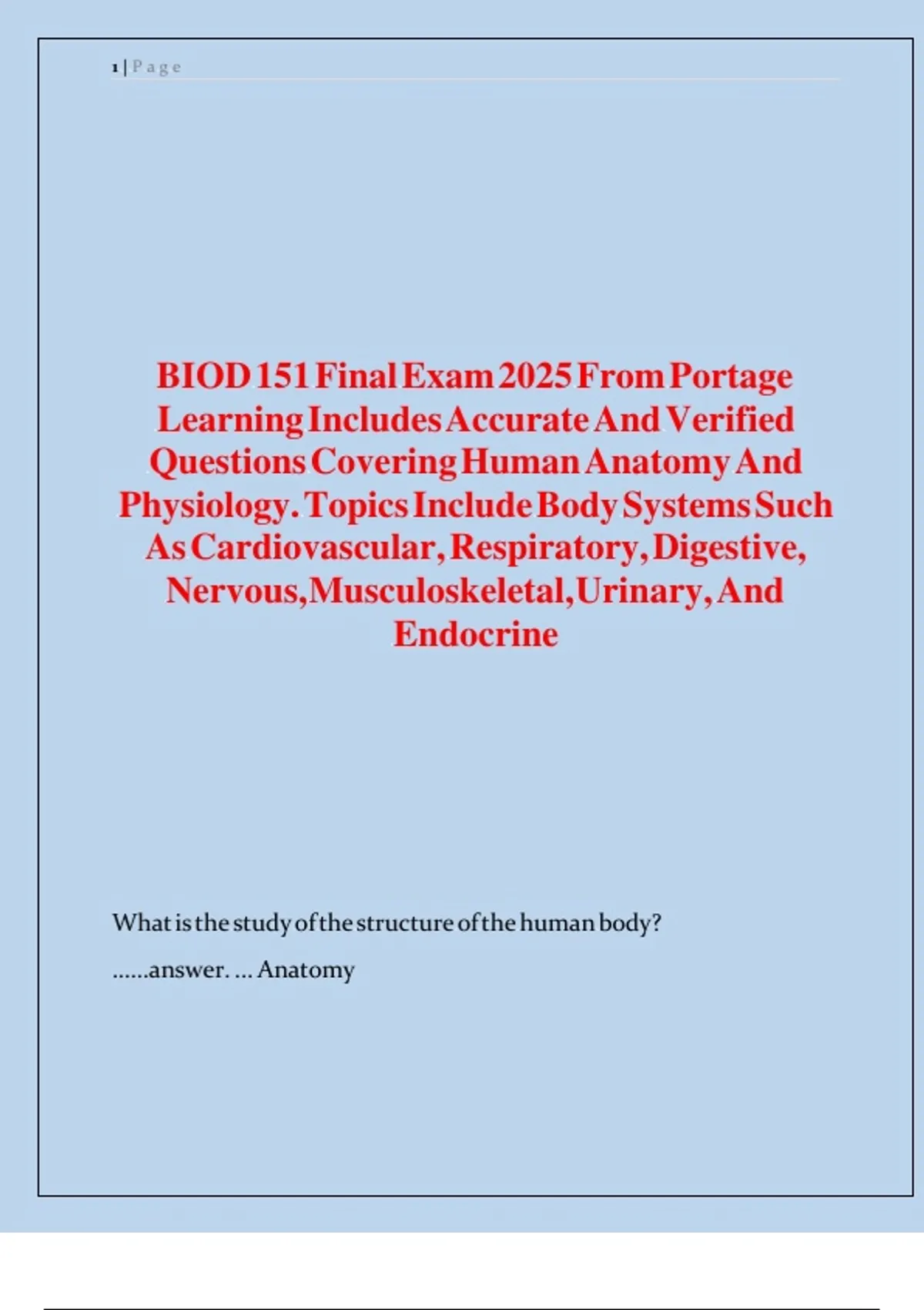 BIOD 151 Final Exam 2025 From Portage h h h h h h