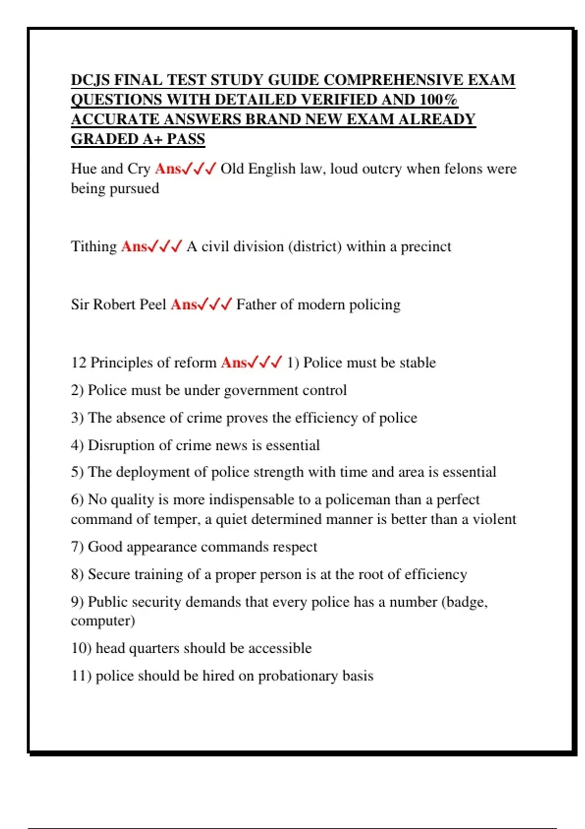 12 Principles of reform Ans✓✓✓ 1) Police must be stable