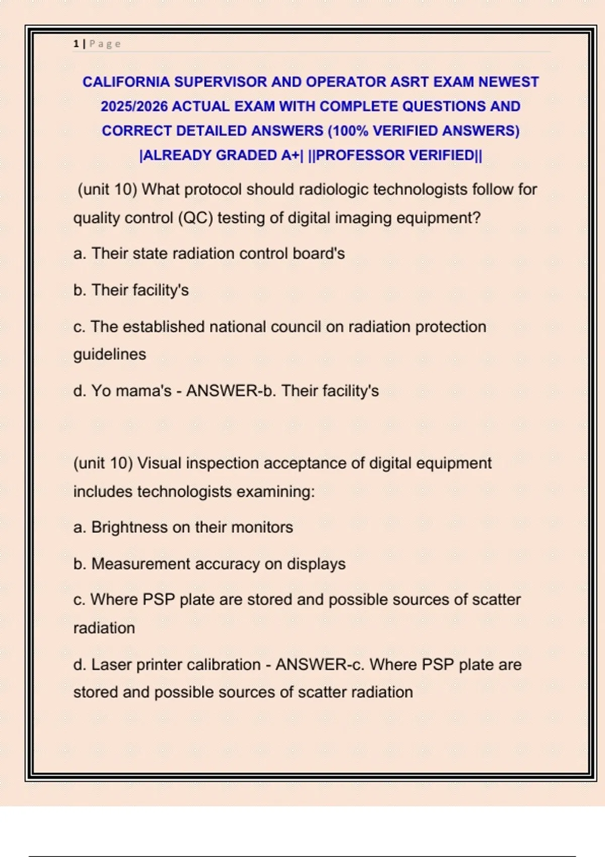 CALIFORNIA SUPERVISOR AND OPERATOR ASRT EXAM NEWEST