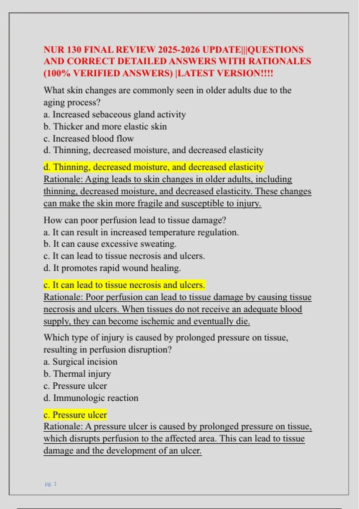 NUR 130 FINAL REVIEW UPDATE|||QUESTIONS AND CORRECT DETAILED ANSWERS WITH RATIONALES (100% VERIFIED ANSWERS) |LATEST VERSION!!!!