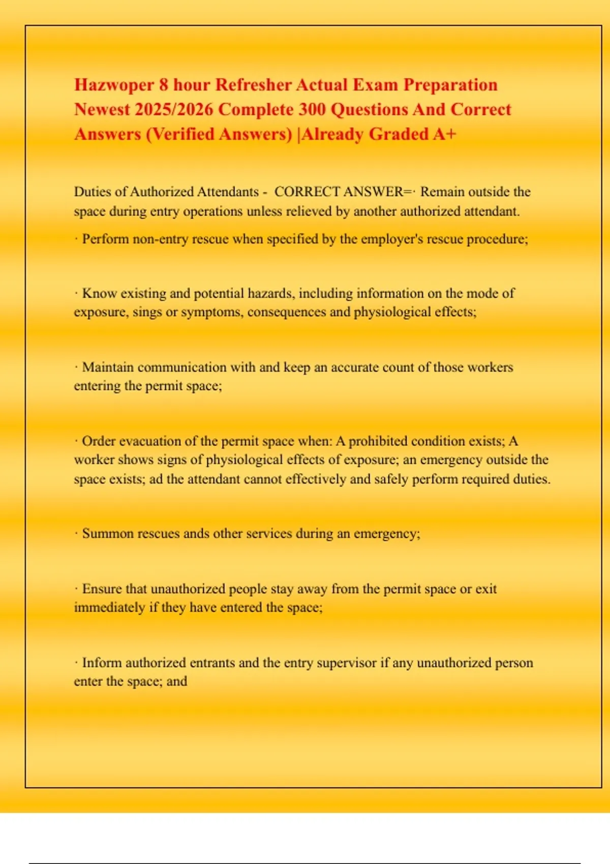Duties of Authorized Attendants - CORRECT ANSWER=· Remain outside the