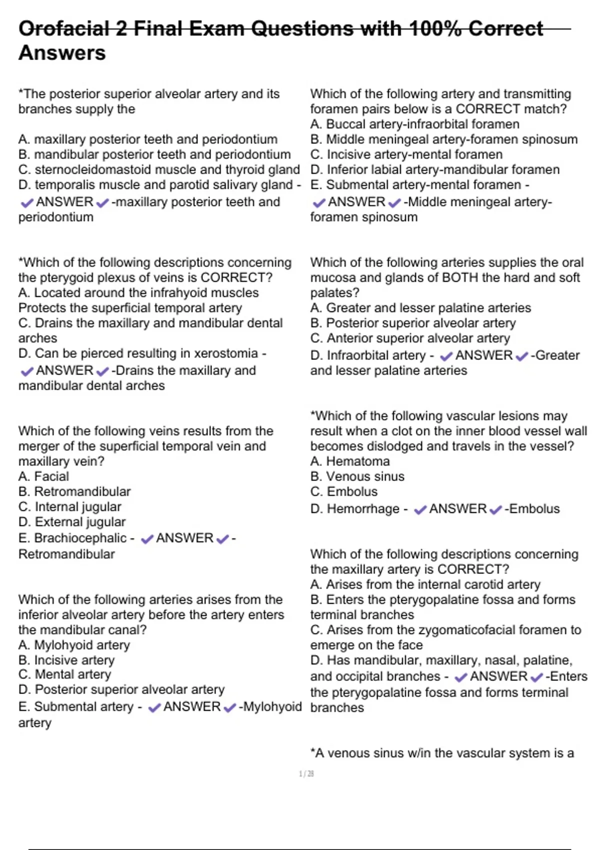 , Orofacial 2 Final Exam Questions with 100% Correct