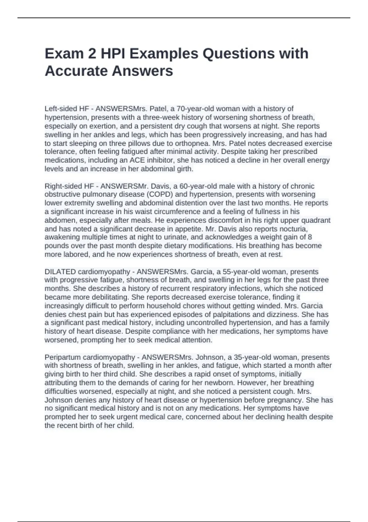 Left-sided HF - ANSWERSMrs. Patel, a 70-year-old woman with a history of