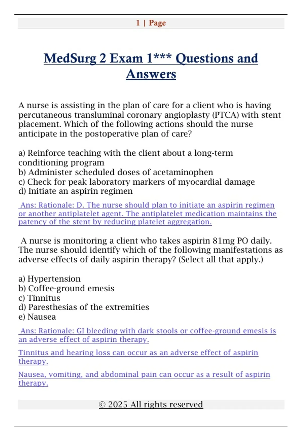 Ans: Rationale: D. The nurse should plan to initiate an aspirin regimen