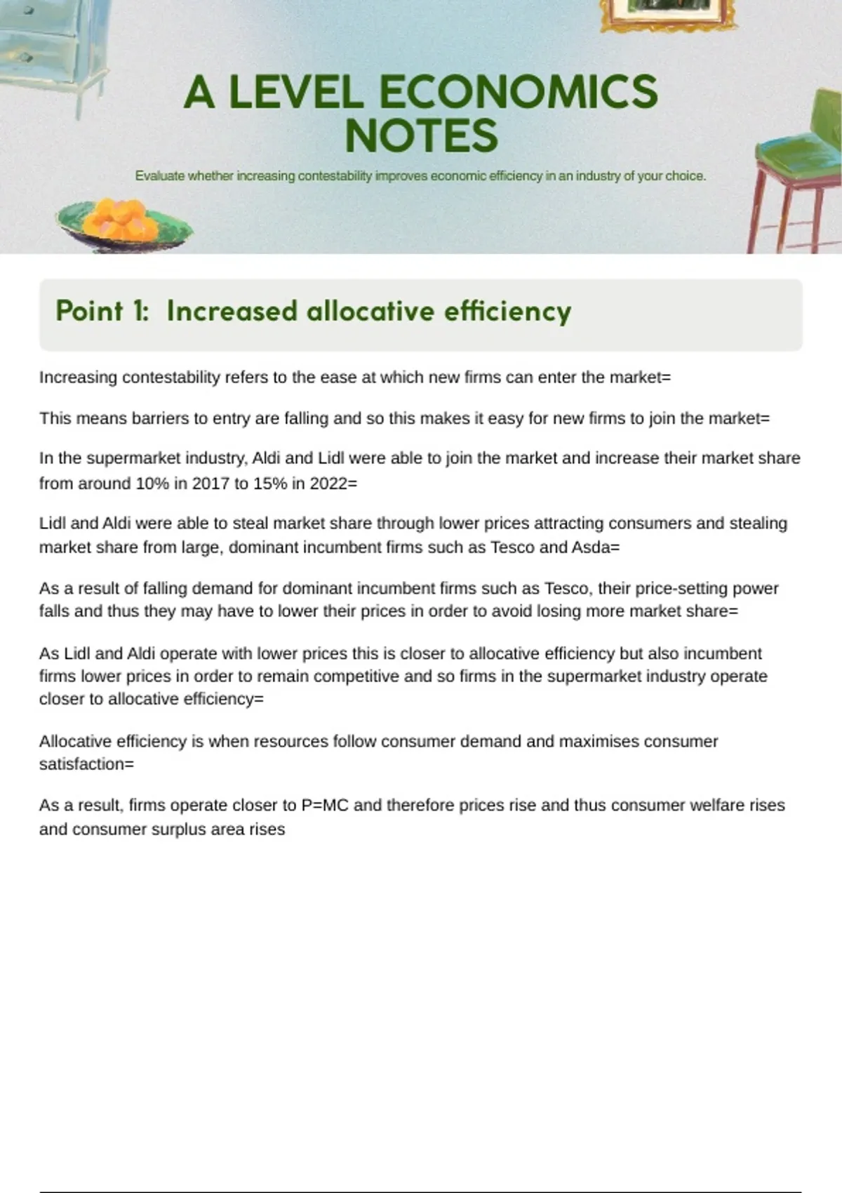 As Lidl and Aldi operate with lower prices this is closer to allocative efficiency but also incumbent