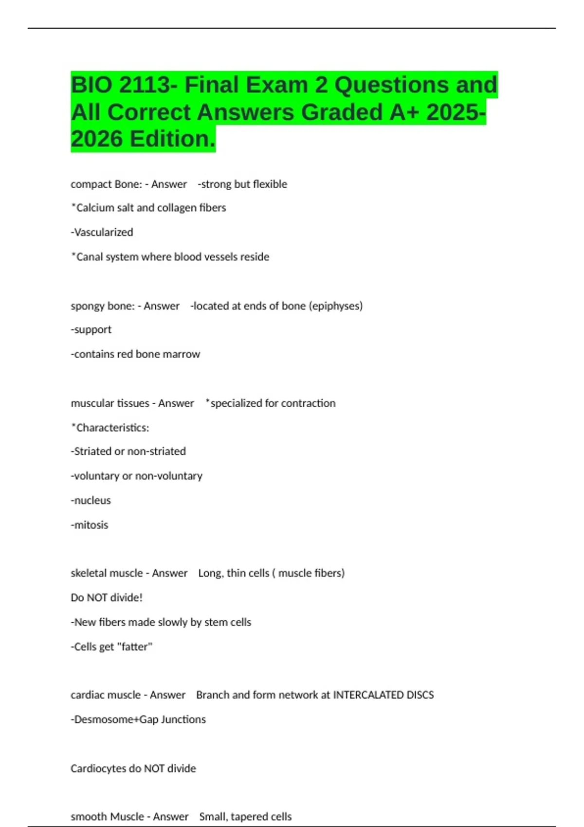 skeletal muscle - Answer Long, thin cells ( muscle fibers)