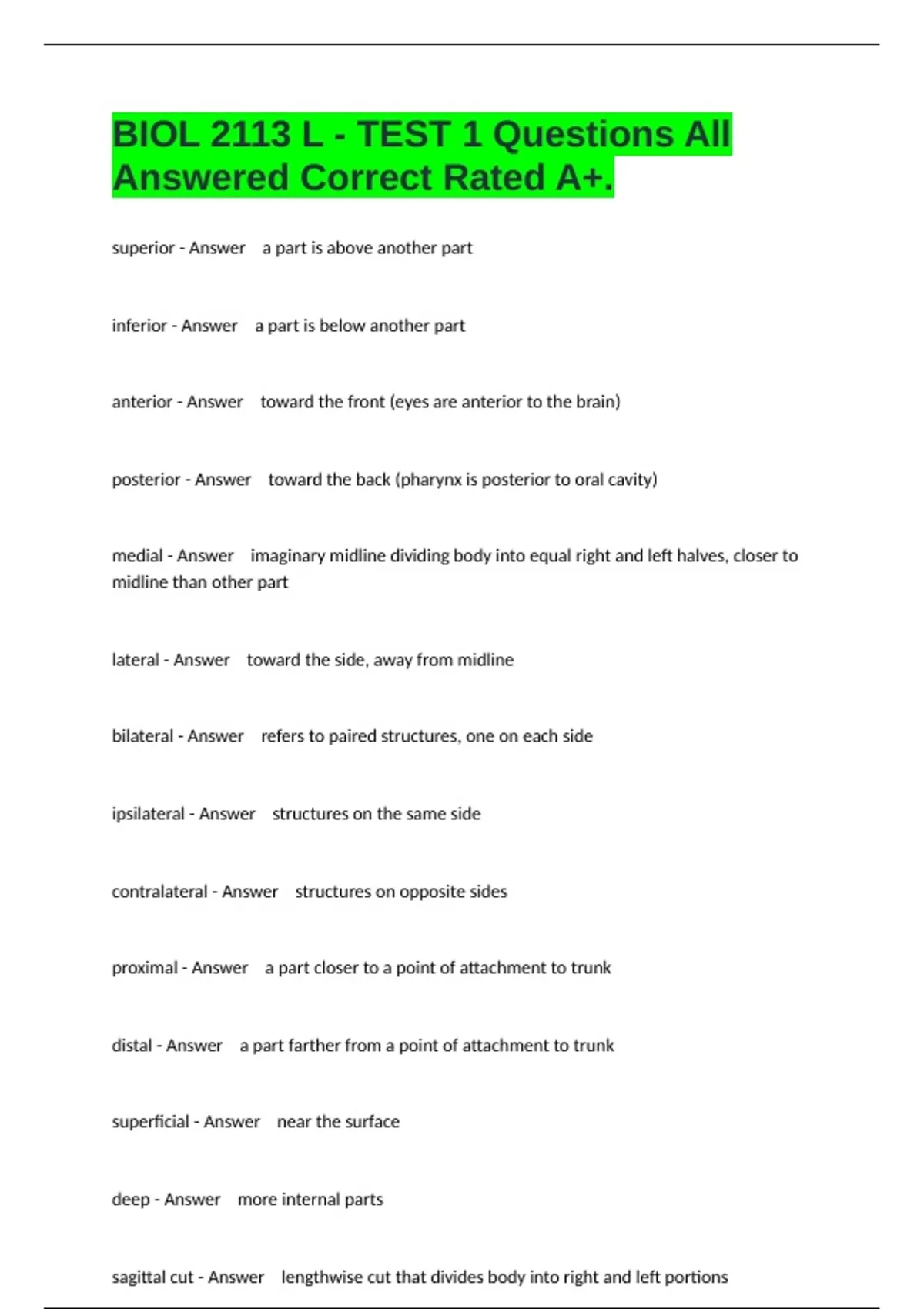 superior - Answer a part is above another part