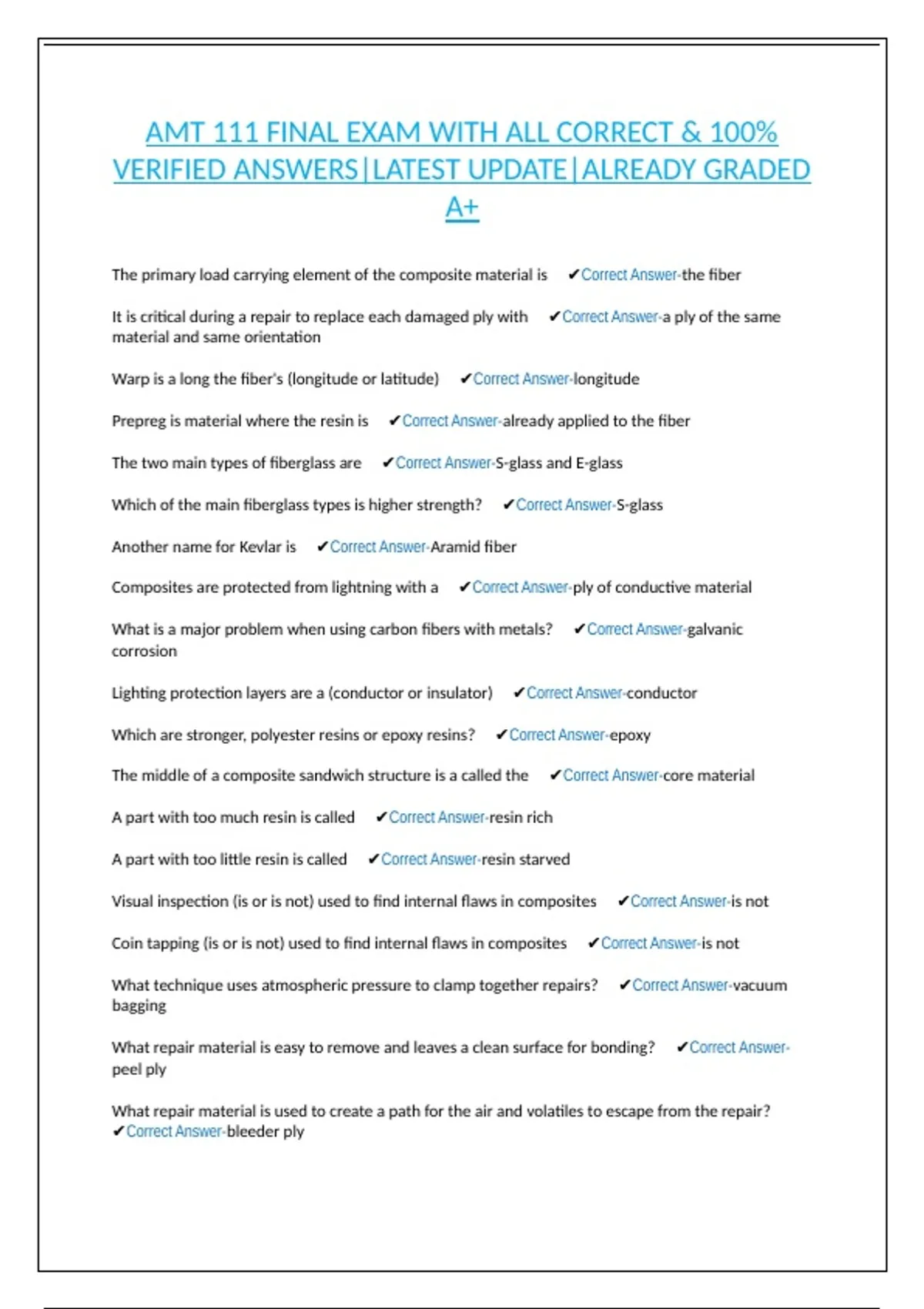 AMT 111 FINAL EXAM WITH ALL CORRECT & 100% VERIFIED ANSWERS|LATEST UPDATE|ALREADY GRADED A+