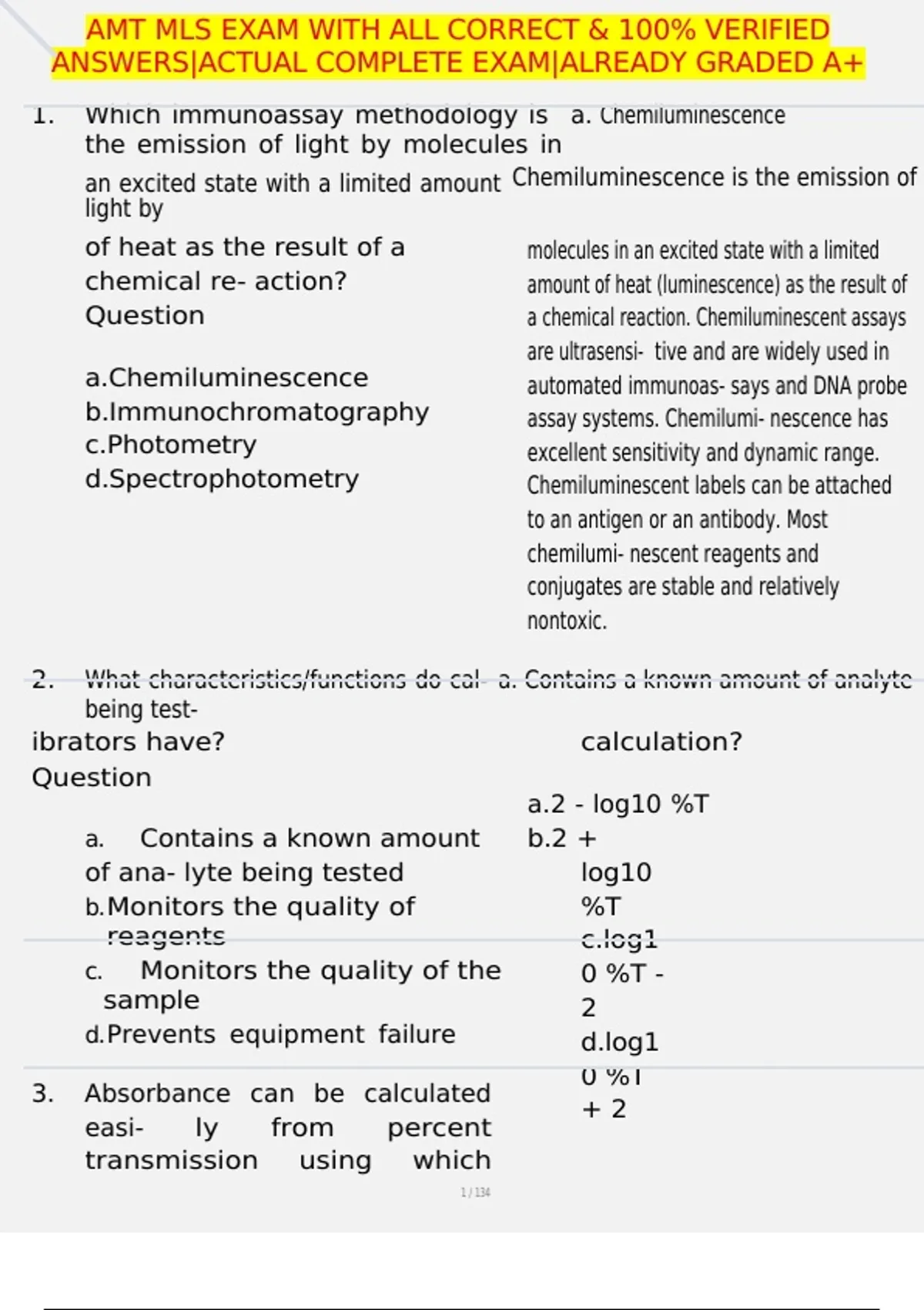 , AMT MLS EXAM WITH ALL CORRECT & 100% VERIFIED