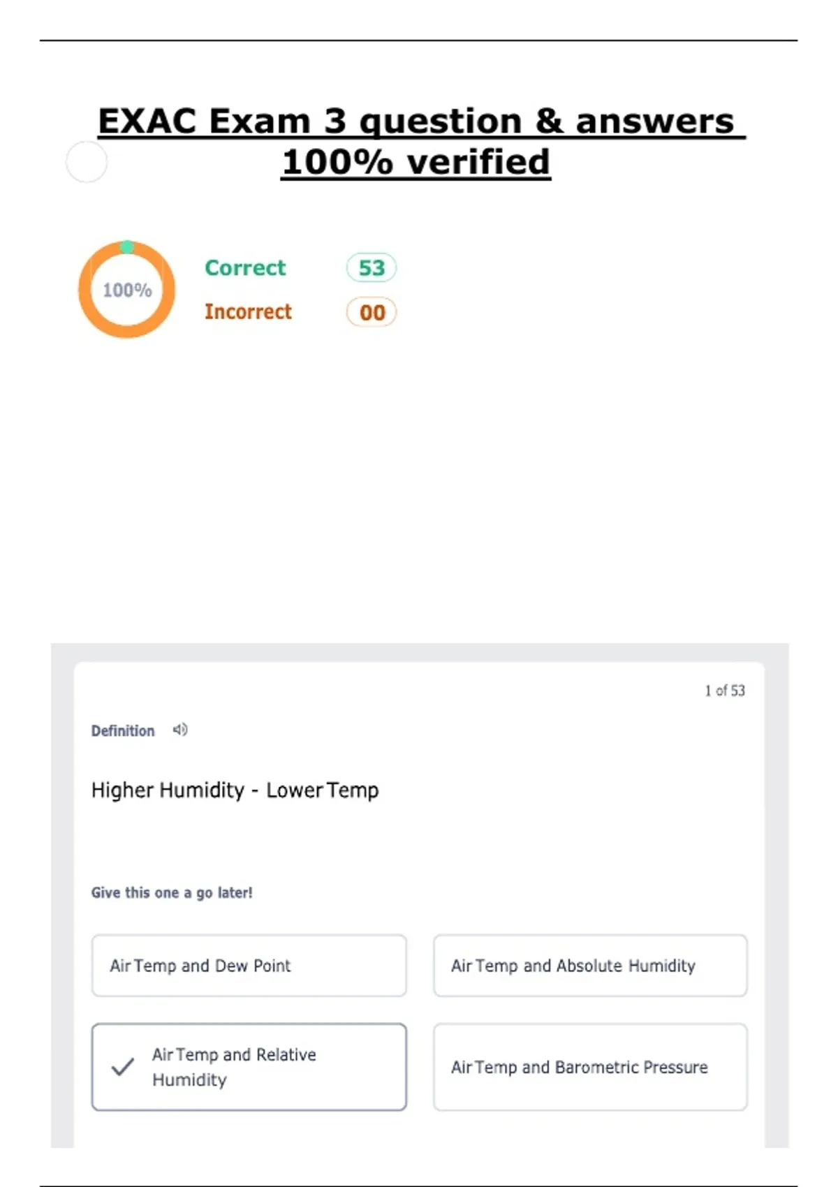 , EXAC Exam 3 question & answers 100% verified