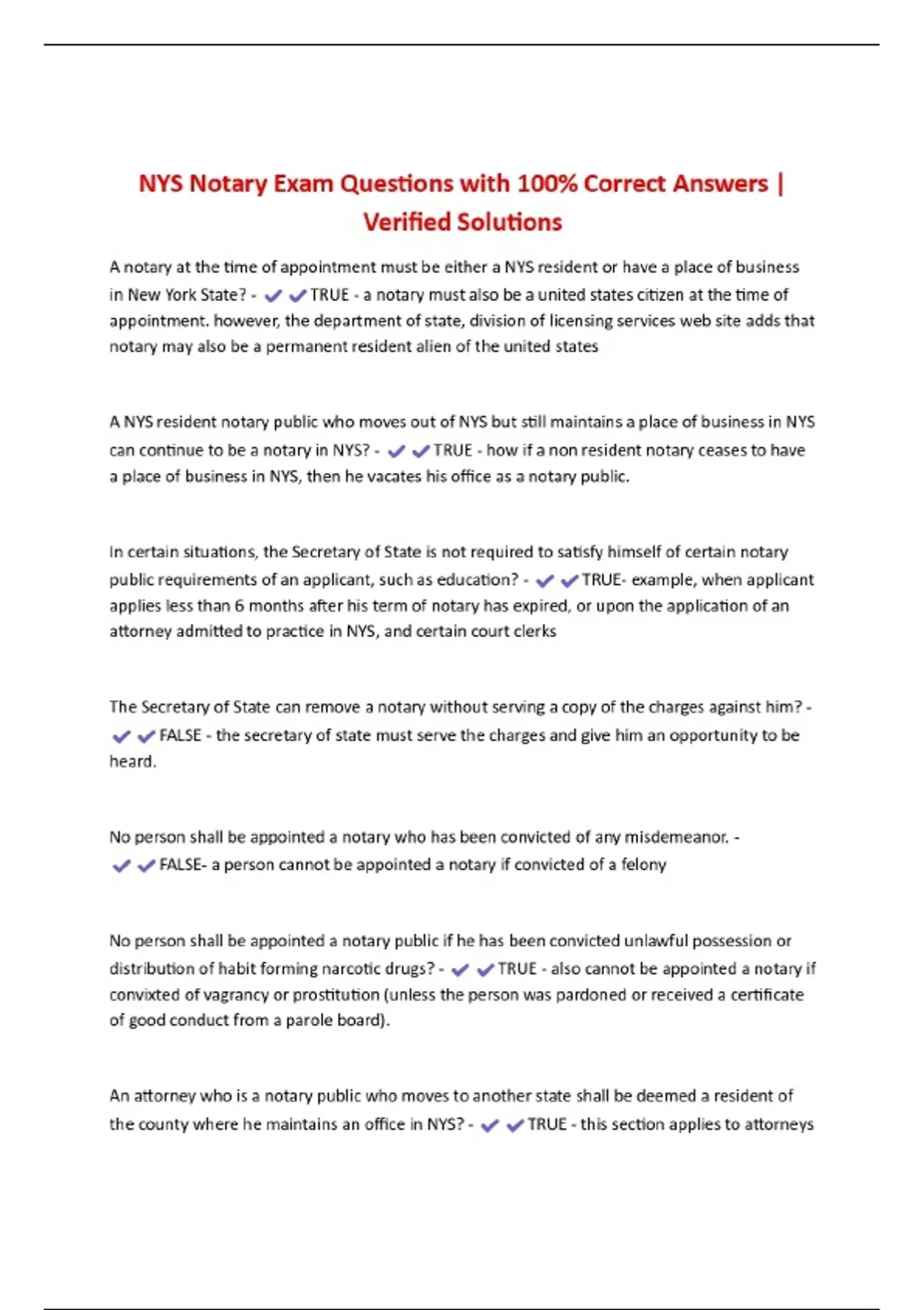 NYS Notary Exam Questions with 100% Correct Answers | Verified Solutions
