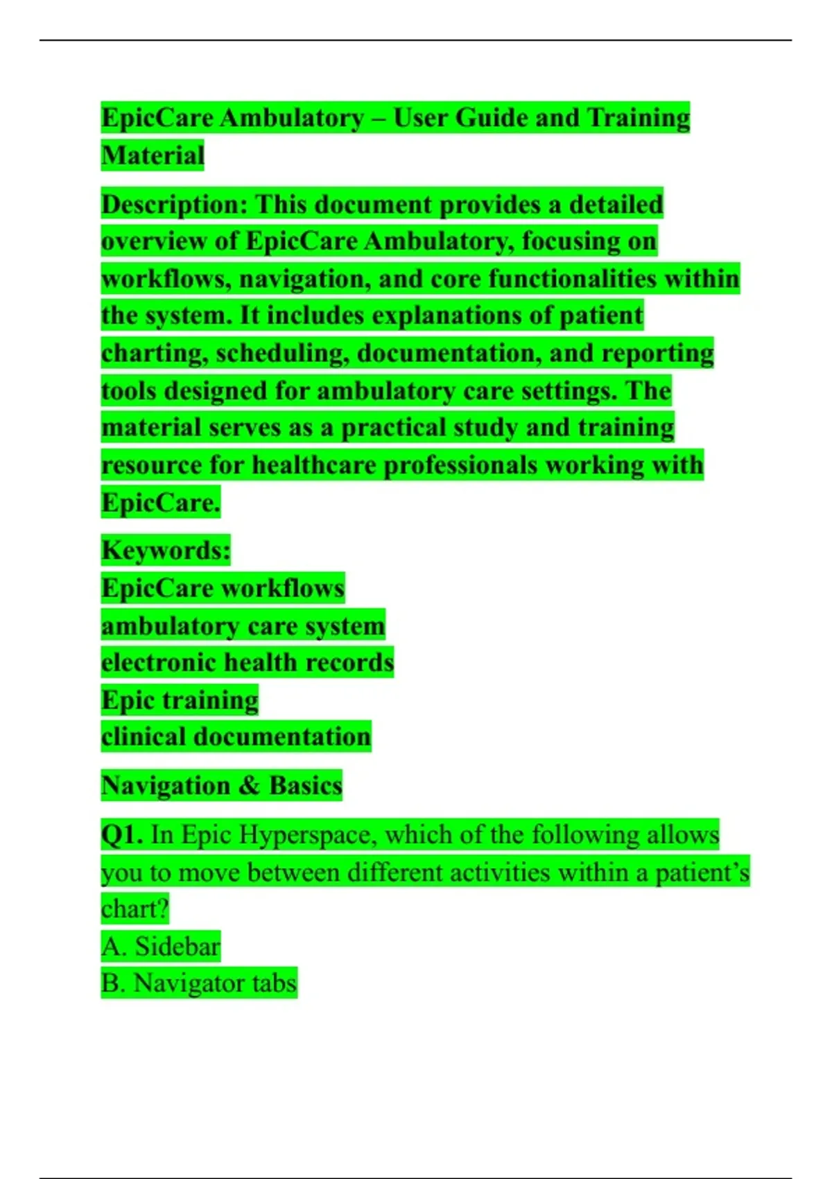 EpicCare Ambulatory – User Guide and Training Material Description: This document provides a detailed overview of EpicCare Ambulatory, focusing on workflows, navigation, and core functionalities within the system. It includes explanations of patient charting, scheduling, documentation, and reporting tools designed for ambulatory care settings. The material serves as a practical study and training resource for healthcare professionals working with EpicCare. Keywords: EpicCare workflows ambulatory care system electronic health records Epic training clinical documentation