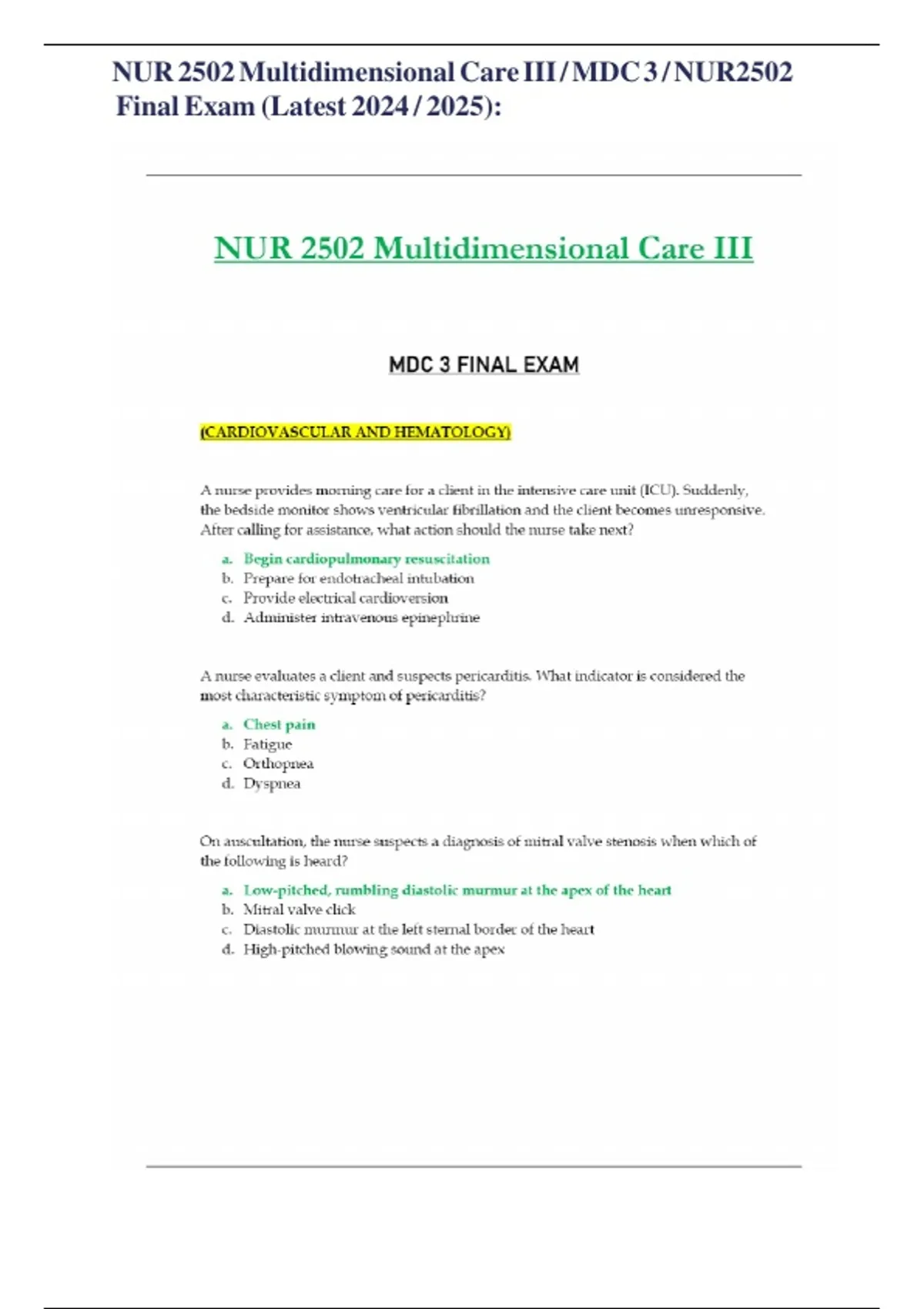 NUR 2502 / NUR2502 Final Exam Multidimensional Care III / MDC 3 - Rasmussen