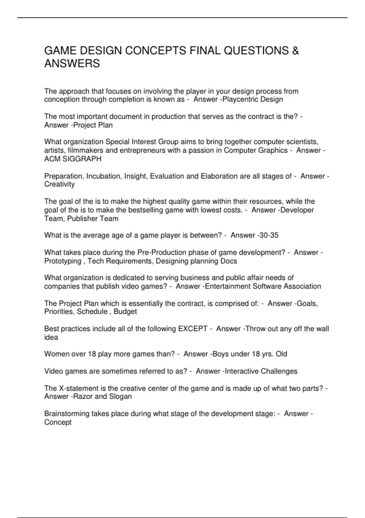 GAME DESIGN CONCEPTS FINAL QUESTIONS & ANSWERS