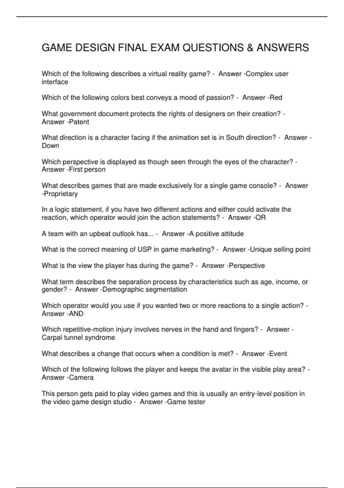 GAME DESIGN FINAL EXAM QUESTIONS & ANSWERS