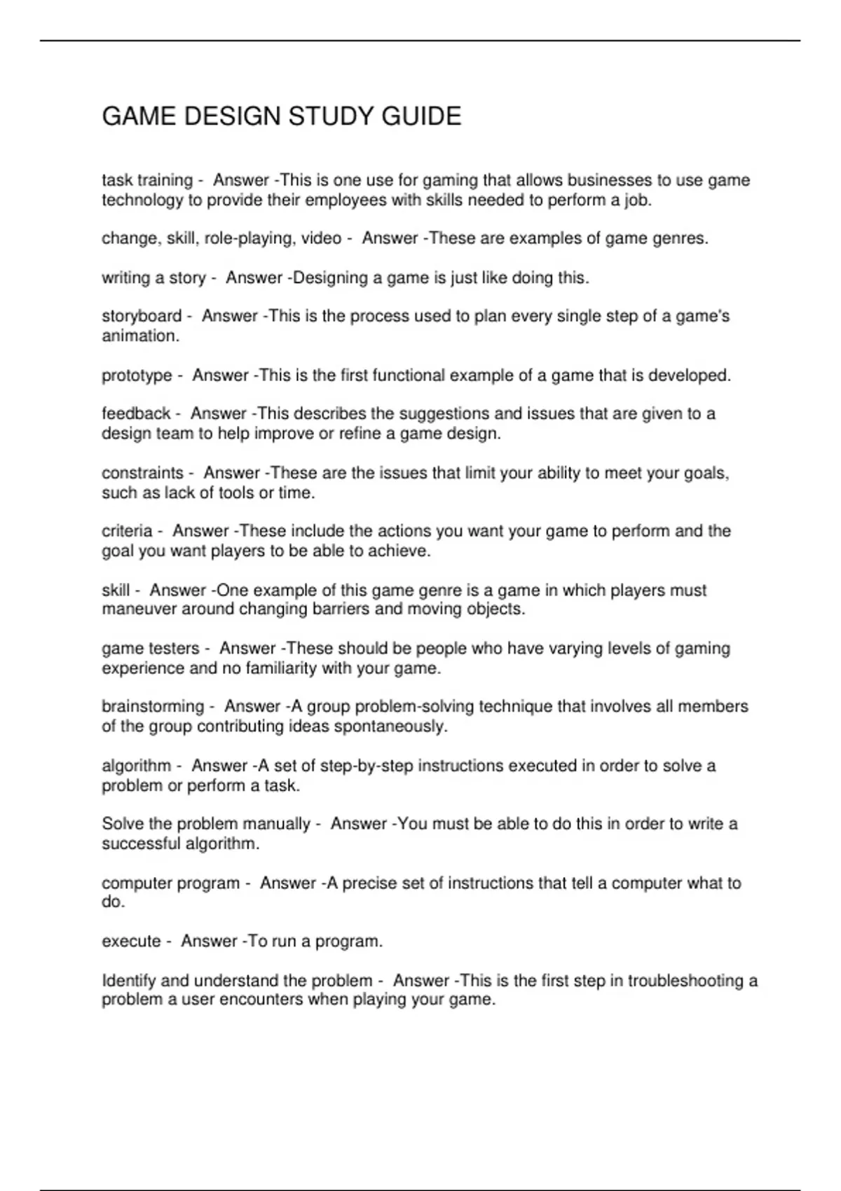 storyboard - Answer -This is the process used to plan every single step of a game's