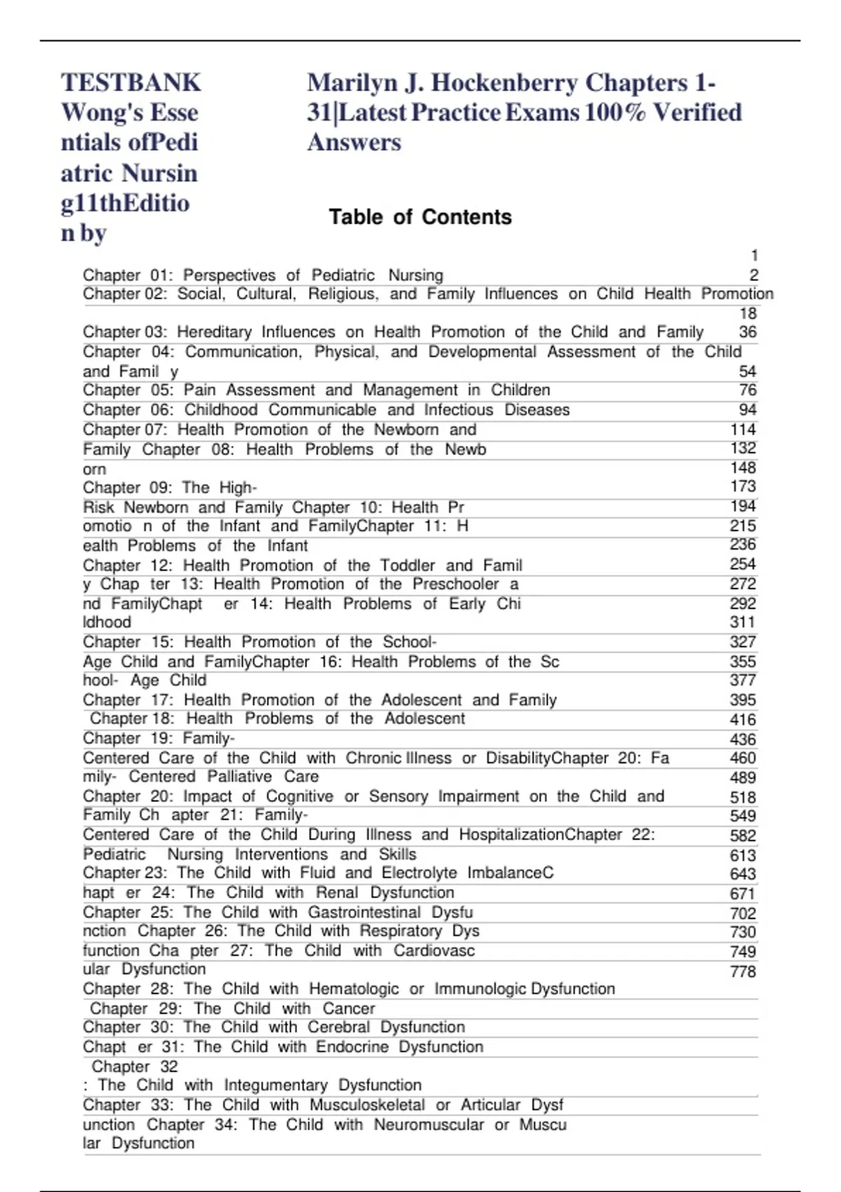 TESTBANK Marilyn J. Hockenberry Chapters 1-