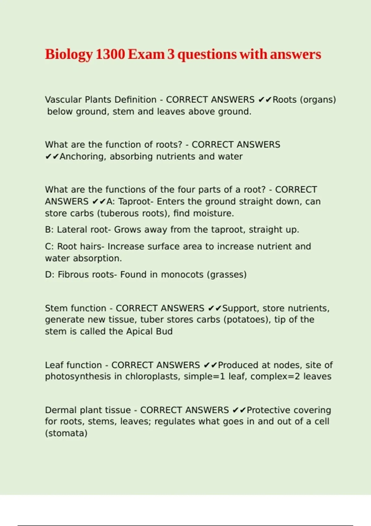 Biology 1300 Exam 3 questions with answers |\ |\ |\ |\ |\ |\