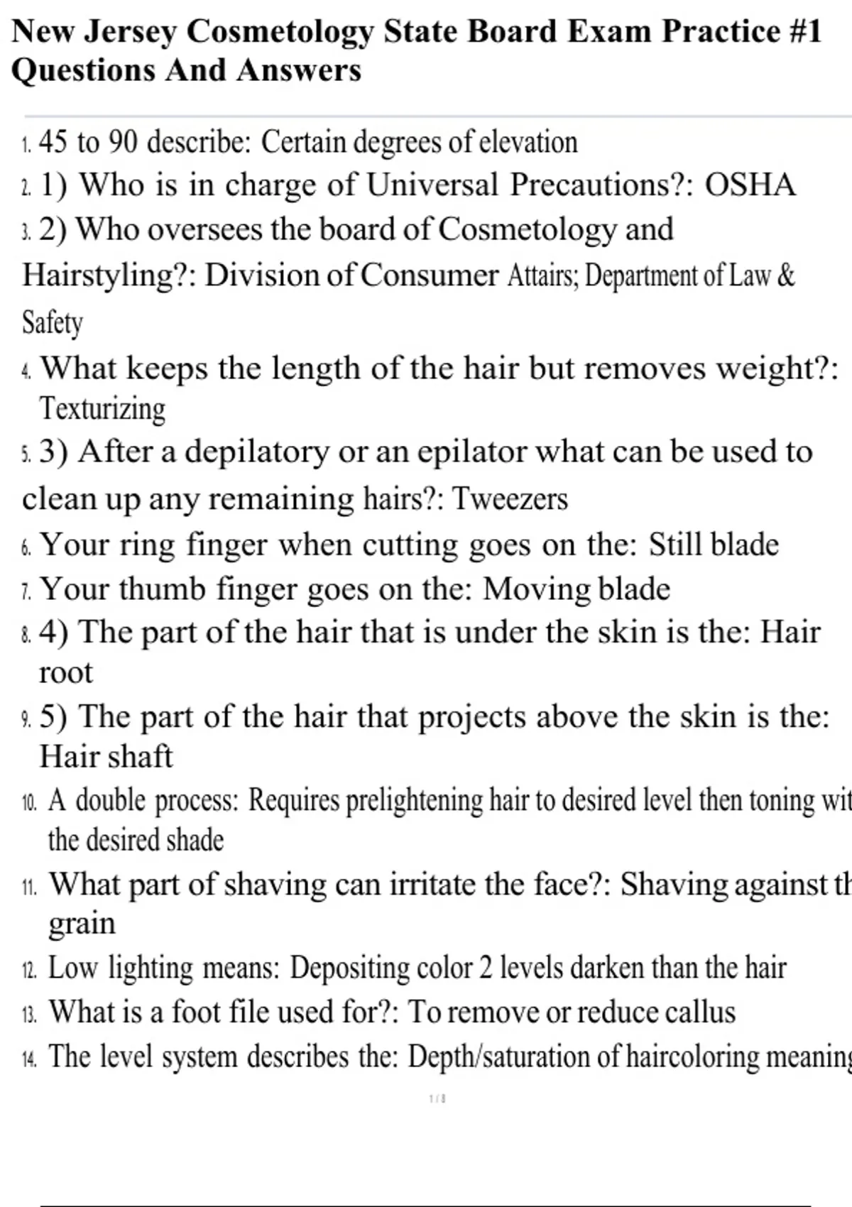 New Jersey Cosmetology State Board Exam Practice #1 Questions And Answers