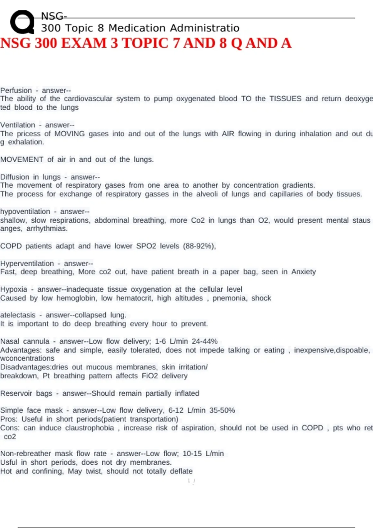 NSG n EXAM 3 TOPIC 7 AND 8 Q AND A