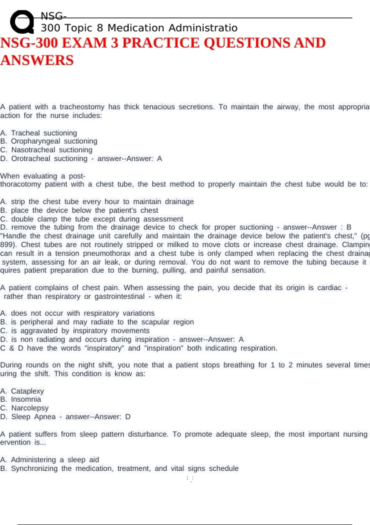 NSG-300 EXAM 3 PRACTICE QUESTIONS AND ANSWERS