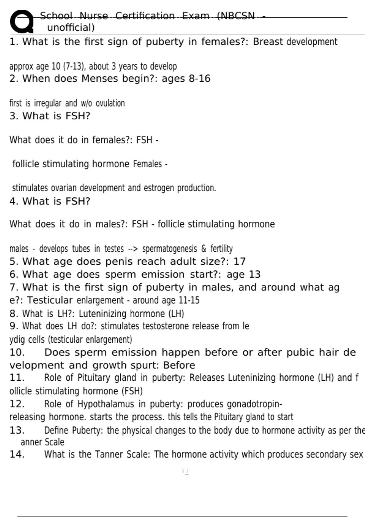 School Nurse Certifcation Exam (NBCSN - unofcial)