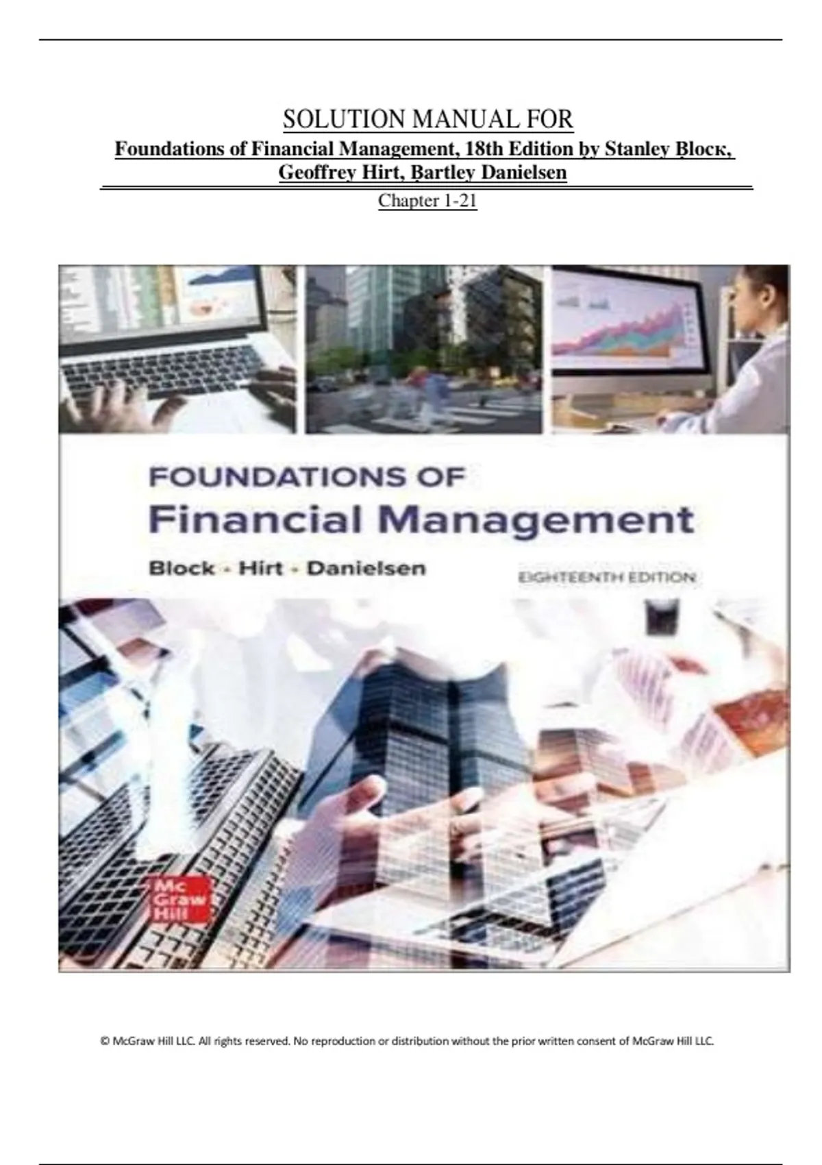 Solution Manual – Foundations of Financial Management, 18th Edition by Block, Hirt & Danielsen, Chapters 1–21