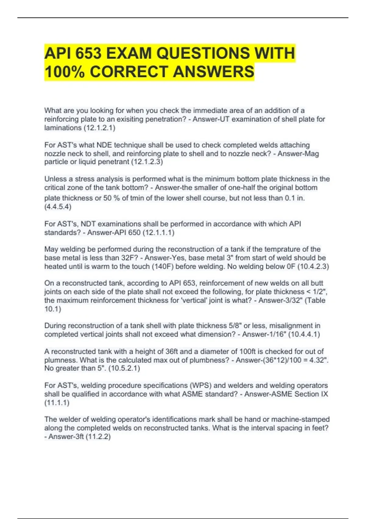 API 653 EXAM QUESTIONS WITH