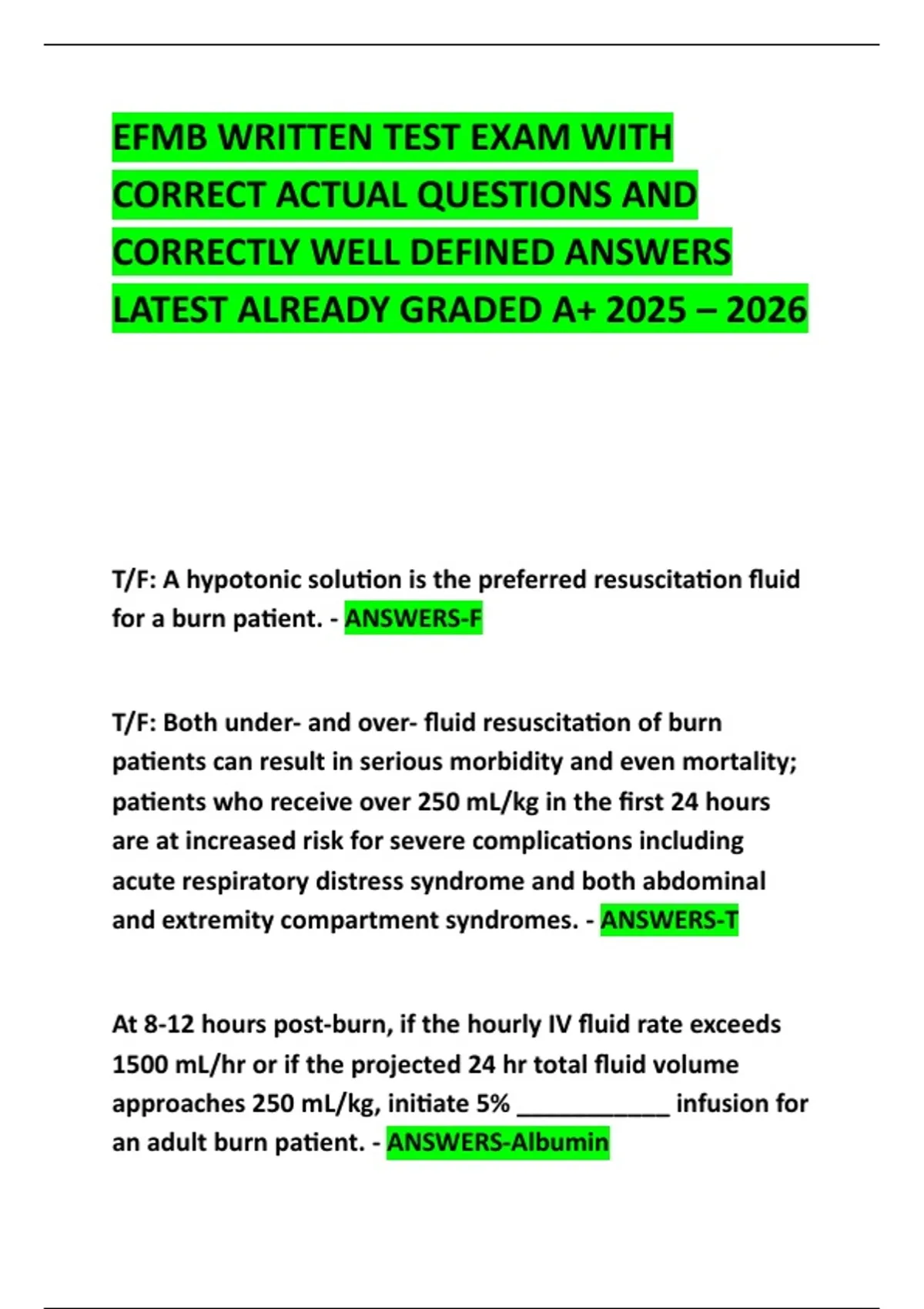 an adult burn patient. - ANSWERS-Albumin