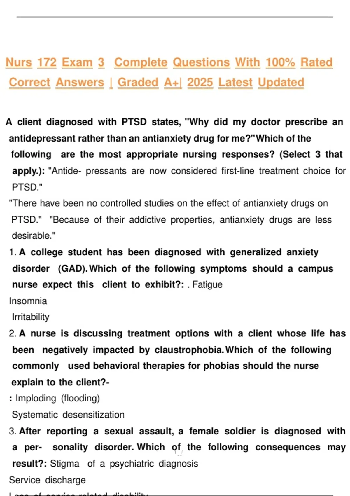 Nurs 172 Exam 3 Complete Questions With 100% Rated Correct Answers | Graded A+| 2025 Latest Updated Nurs 172 Exam 3 Complete Questions With 100% Rated Correct Answers | Graded A+| 2025 Latest Updated Nurs 172 Exam 3 Complete Questions With 100% Rated Correct Answers | Graded A+| 2025 Latest Updated Nurs 172 Exam 3 Complete Questions With 100% Rated Correct Answers | Graded A+| 2025 Latest Updated Nurs 172 Exam 3 Complete Questions With 100% Rated Correct Answers | Graded A+| 2025 Latest Updated