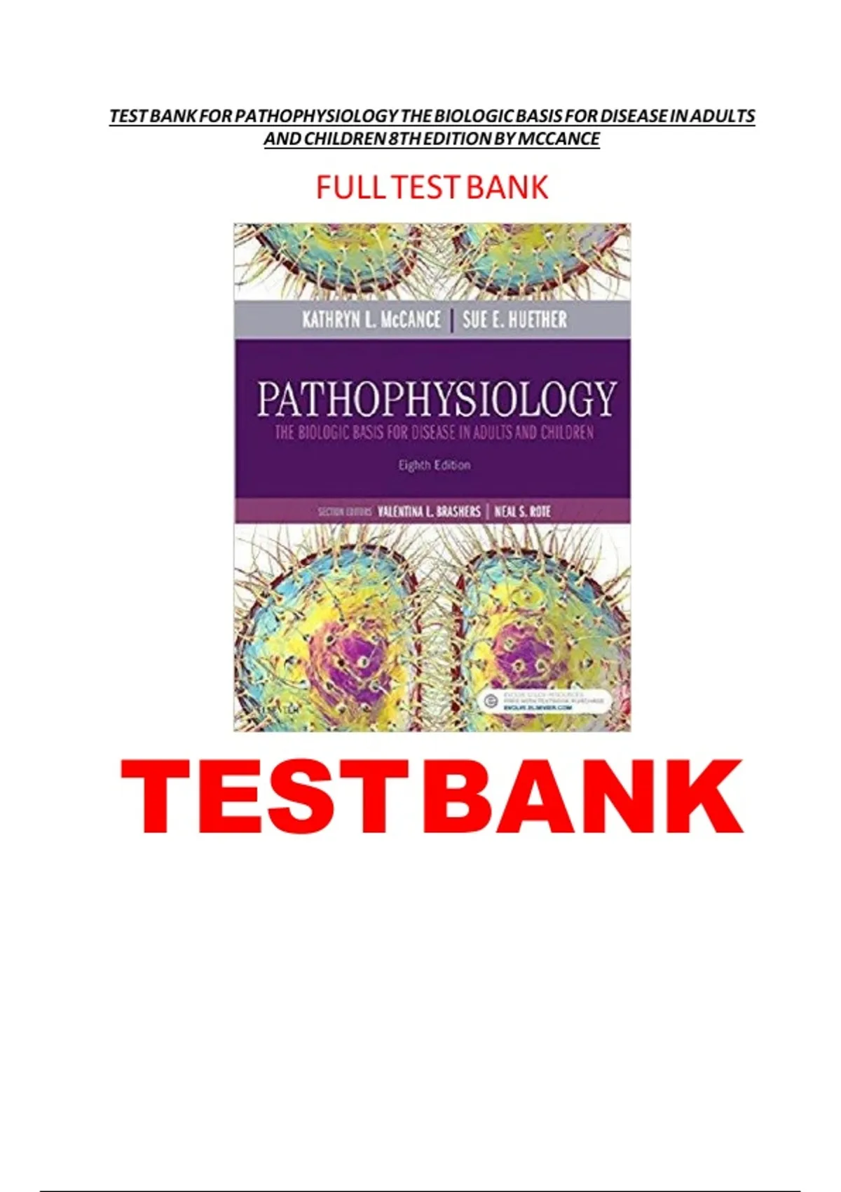TEST BANK FOR PATHOPHYSIOLOGY THE BIOLOGIC BASIS FOR DISEASE IN ADULTS AND CHILDREN 8TH EDITION BY MCCANCE
