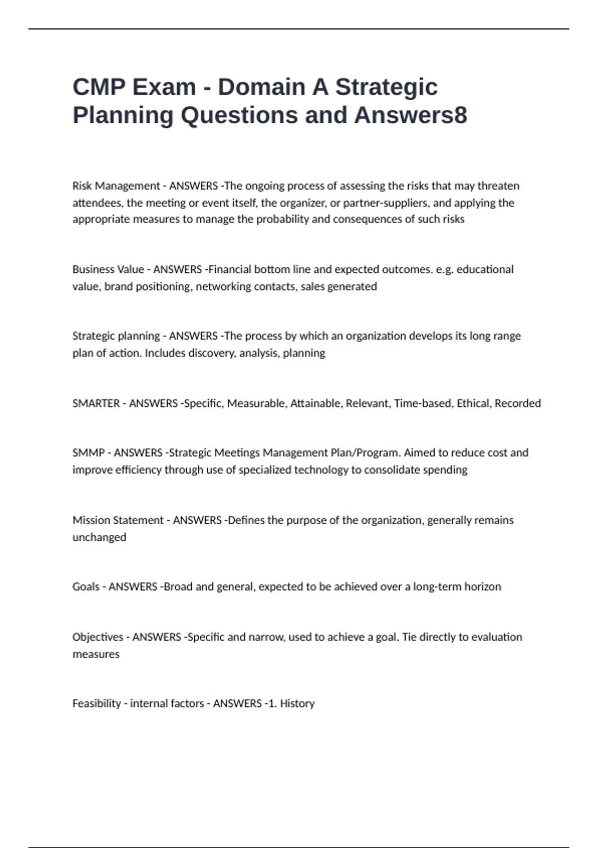 Strategic planning - ANSWERS -The process by which an organization develops its long range
