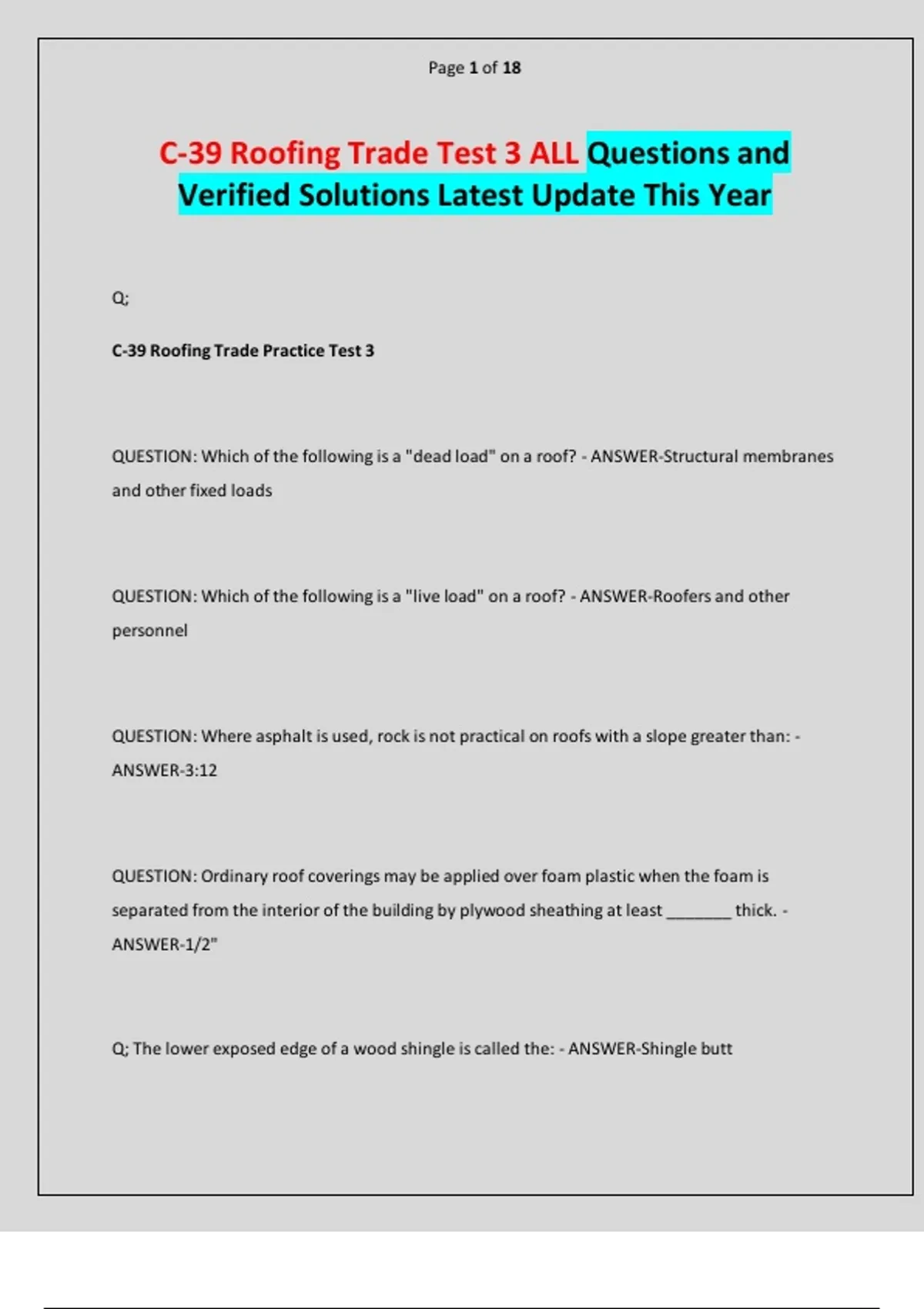 C-39 Roofing Trade Test 3 ALL Questions and