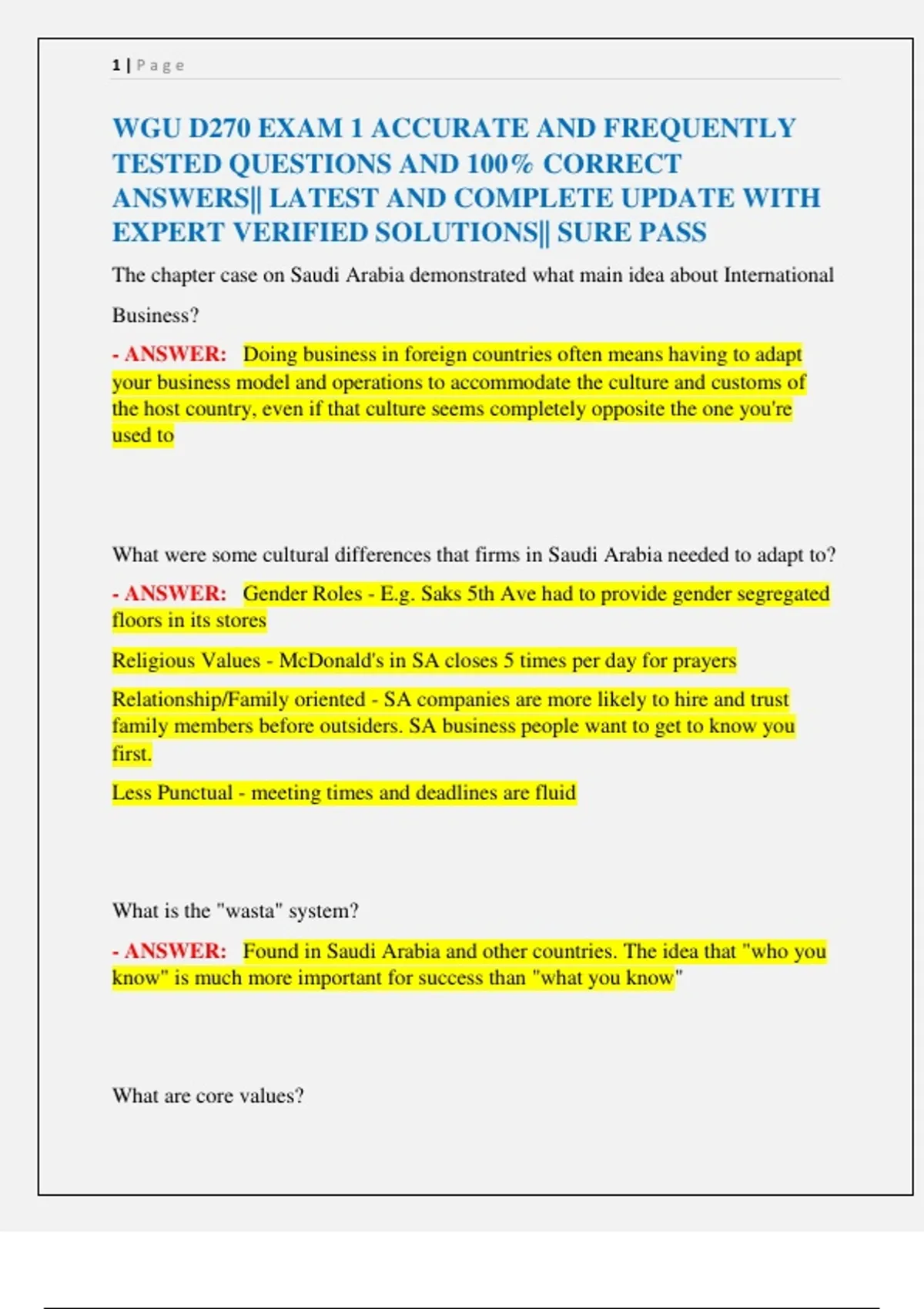 WGU D270 EXAM 1 ACCURATE AND FREQUENTLY