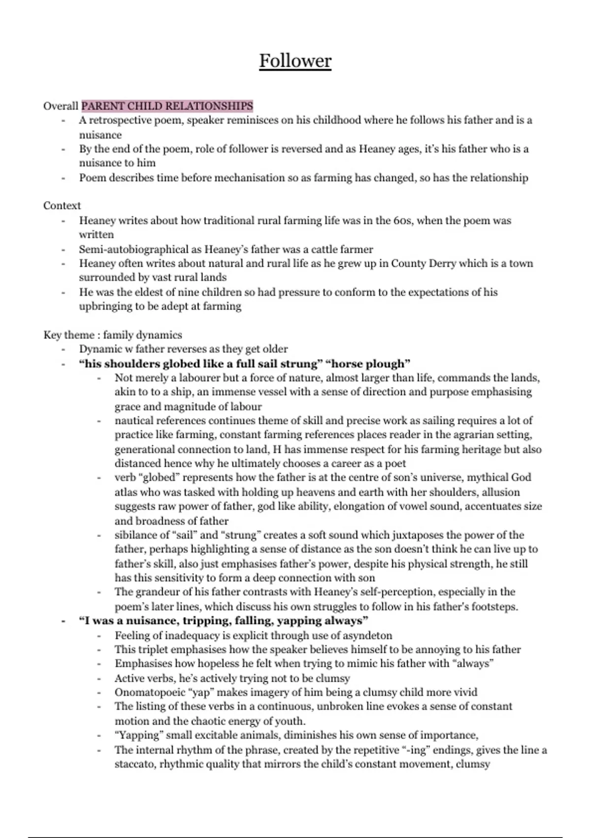 - Semi-autobiographical as Heaney’s father was a cattle farmer