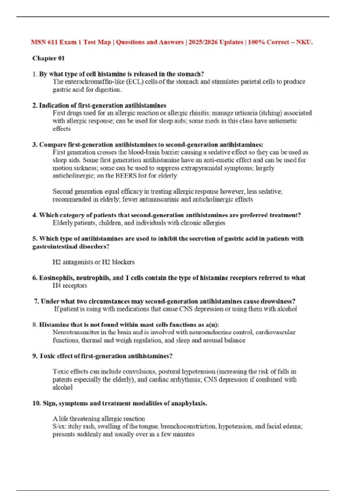MSN 611 Exam 1 Test Map | Questions and Answers | 2025/2026 Updates | 100% Correct – NKU.