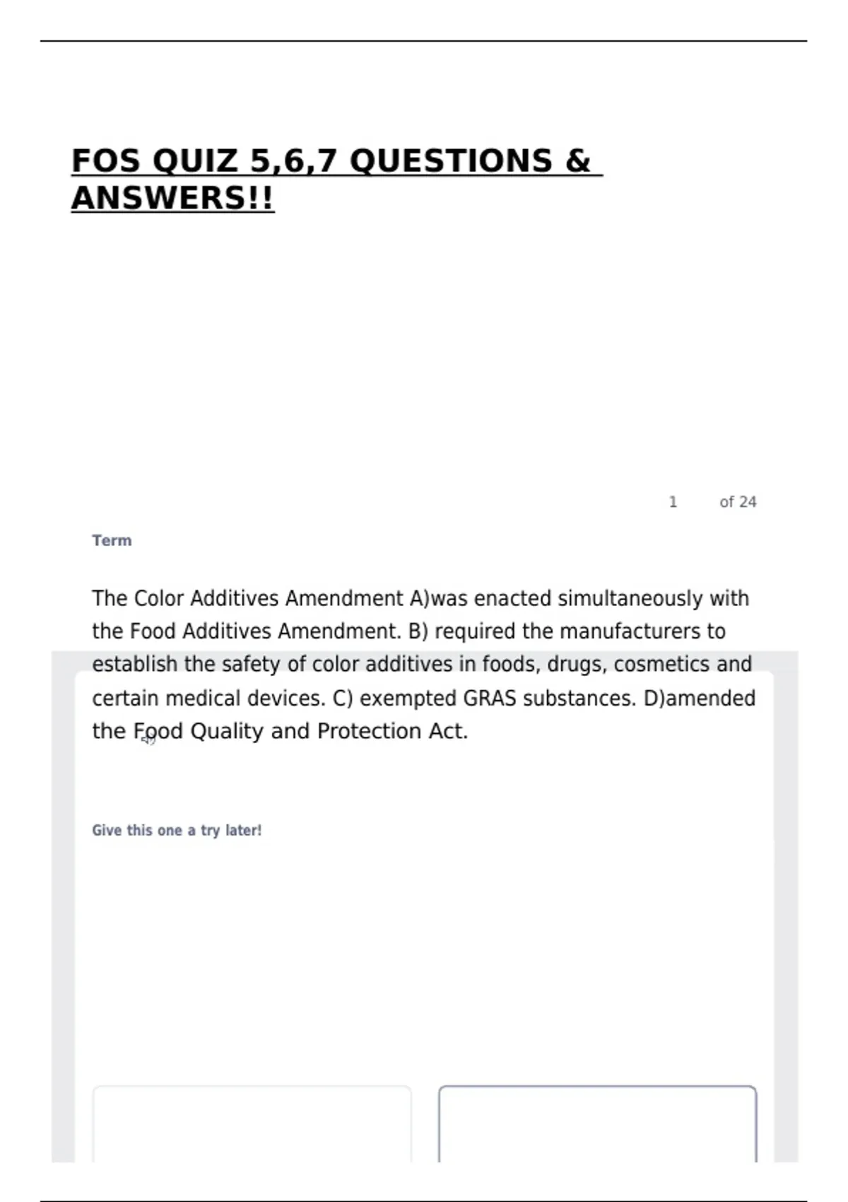 FOS QUIZ 5,6,7 QUESTIONS & ANSWERS!!