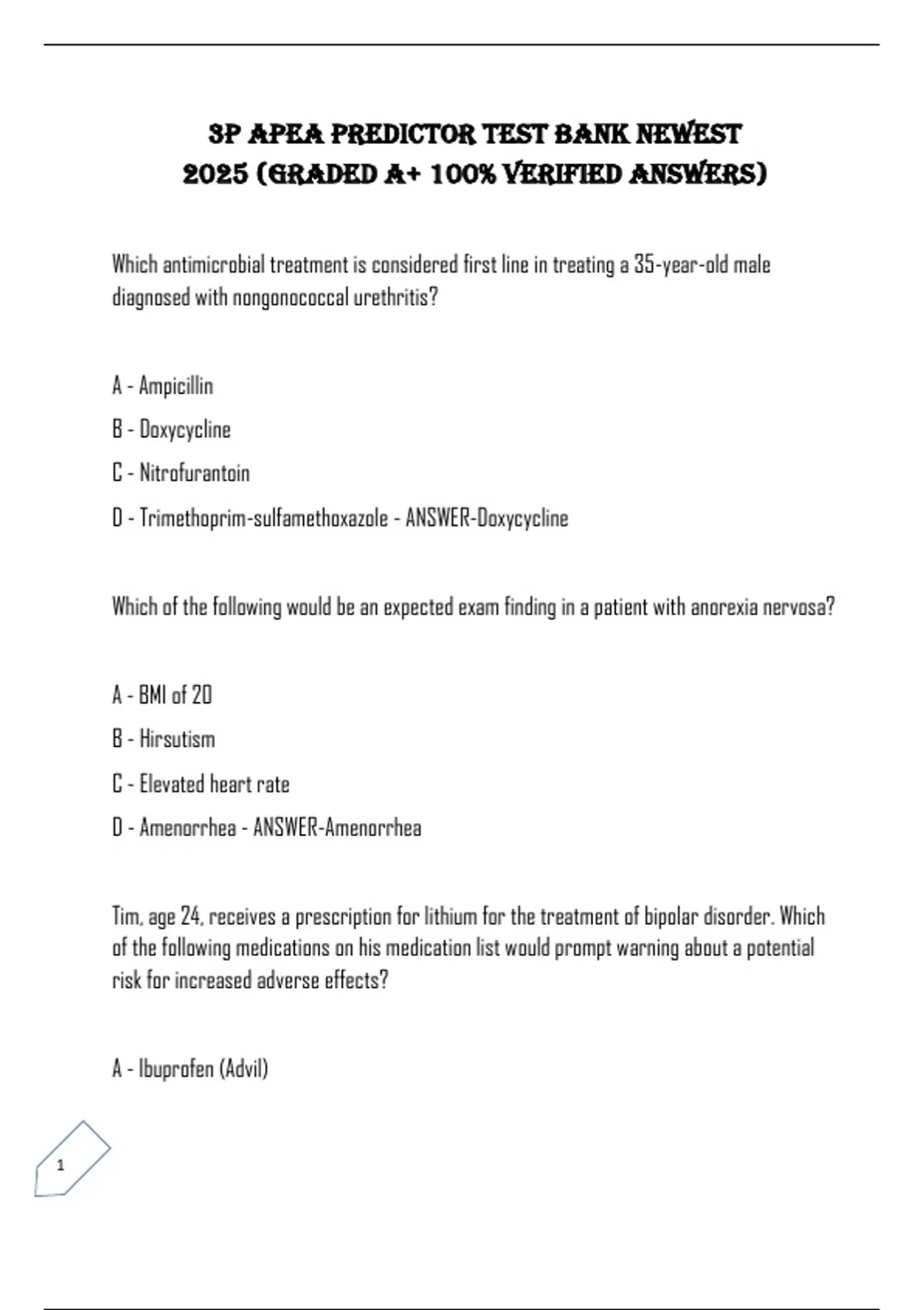 D - Metformin (Glucophage) - ANSWER-Ibuprofen (Advil)