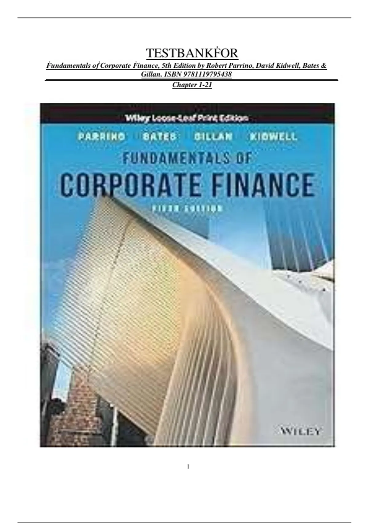 Ḟundamentals oḟ Corporate Ḟinance, 5th Edition by Robert Parrino, David Kidwell, Bates &