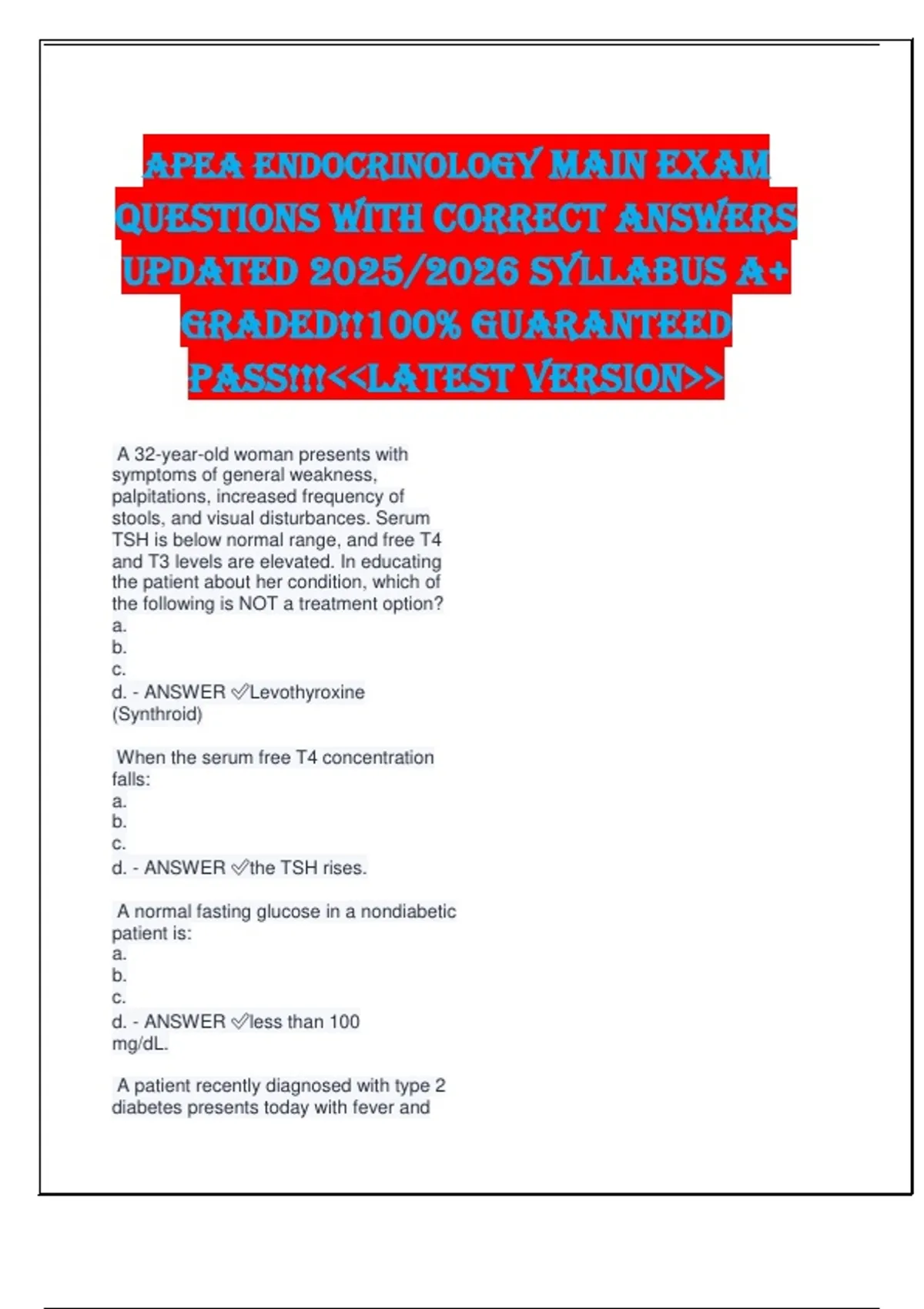 d. - ANSWER ✅Levothyroxine