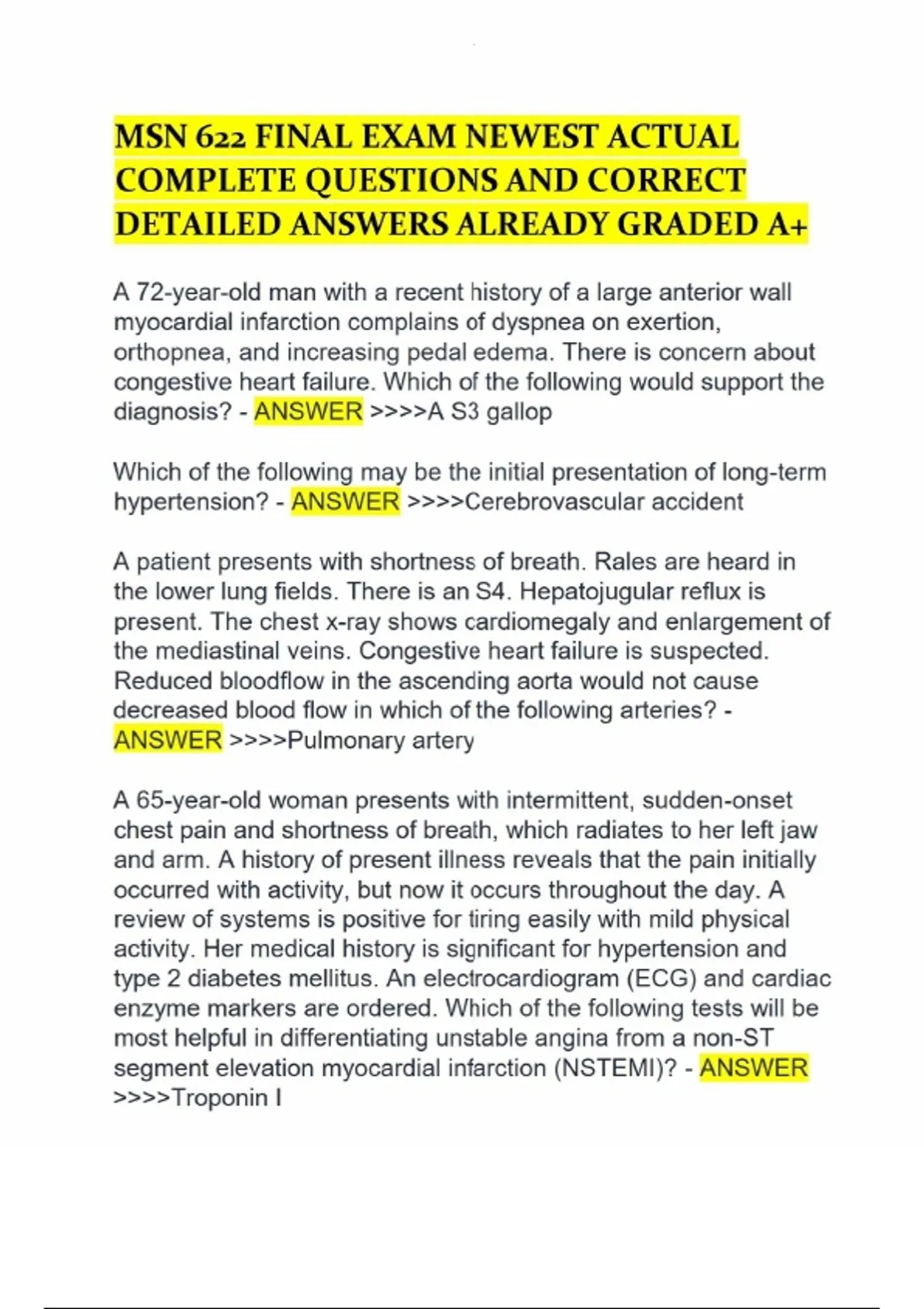 MSN 622 FINAL EXAM MSN 622 FINAL EXAM