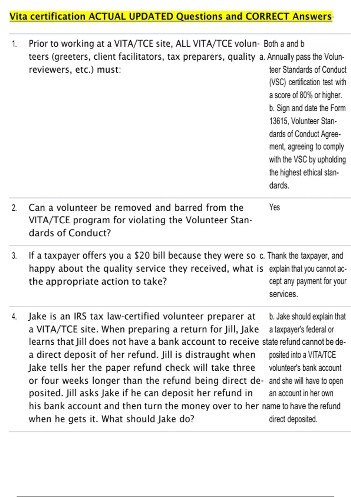 1. Prior to working at a VITA/TCE site, ALL VITA/TCE volun- Both a and b