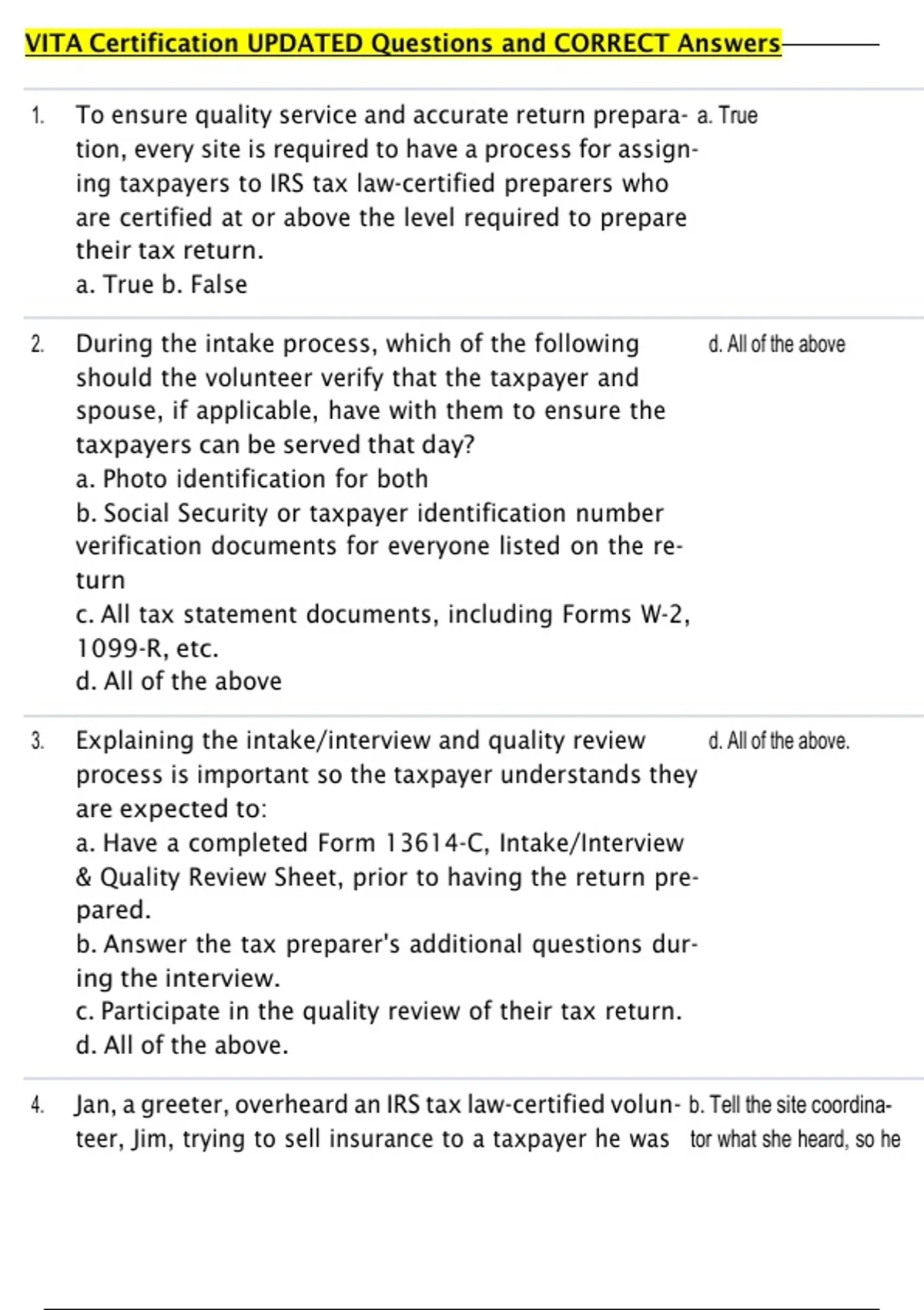 4. Jan, a greeter, overheard an IRS tax law-certified volun- b. Tell the site coordina-