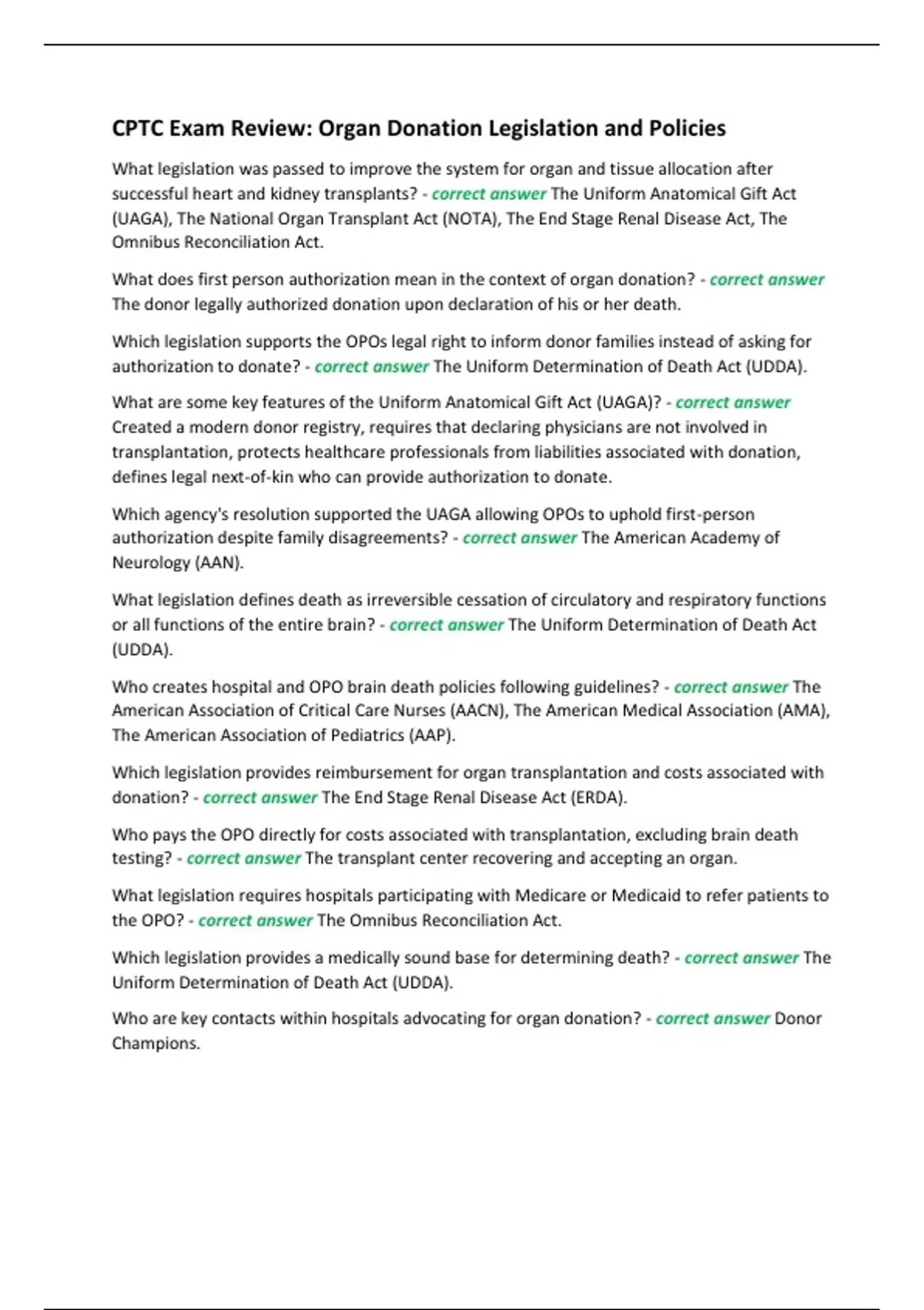 CPTC Exam Review: Organ Donation Legislation and Policies