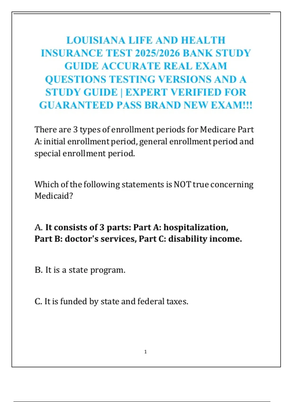 ....ANSWER...D. Medicaid is a state funded program that