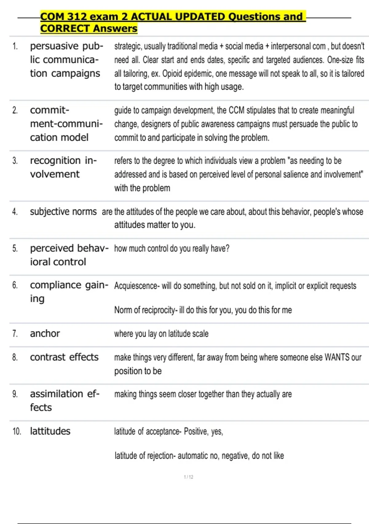 , COM 312 exam 2 ACTUAL UPDATED Questions and