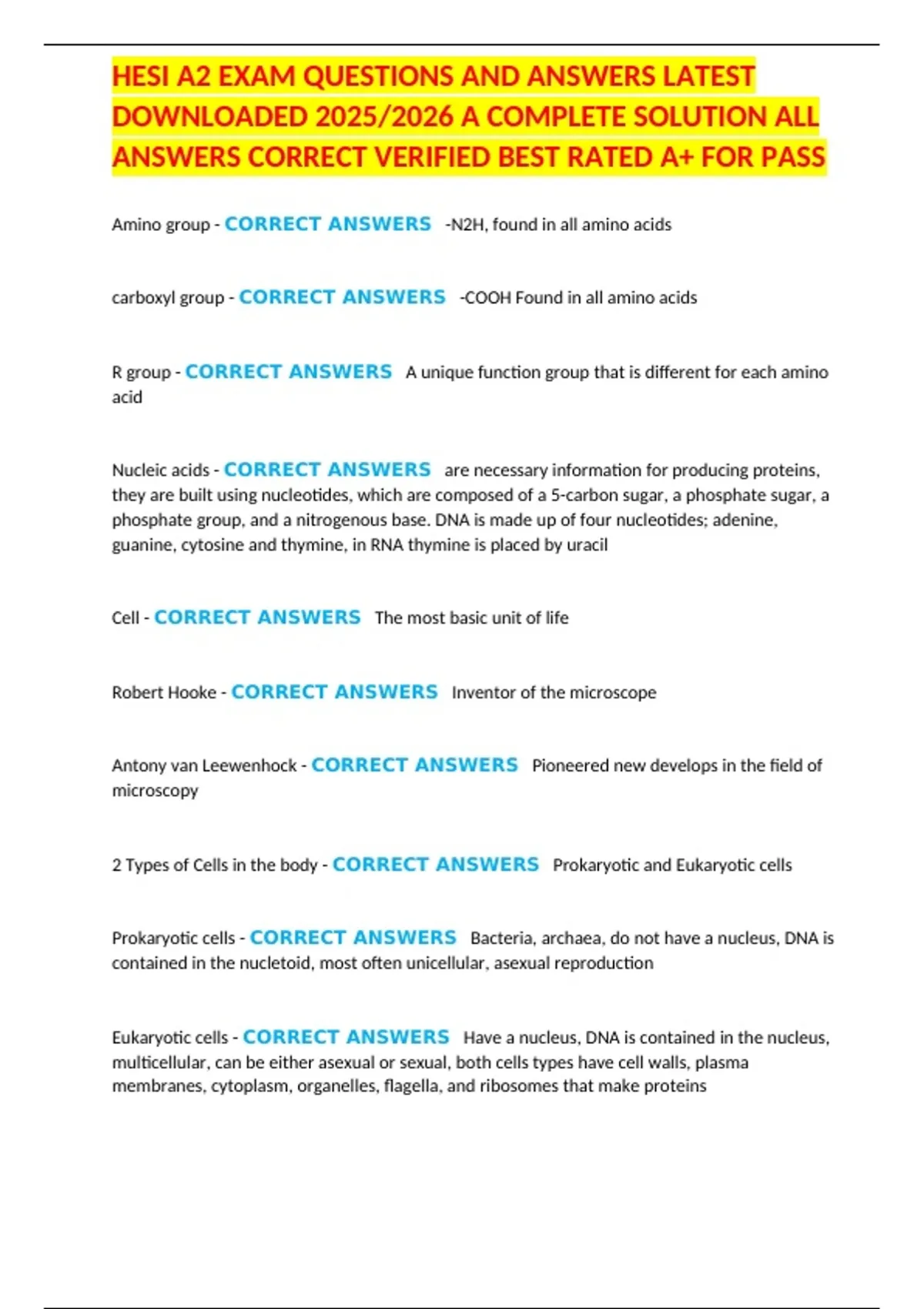 , HESI A2 EXAM QUESTIONS AND ANSWERS LATEST