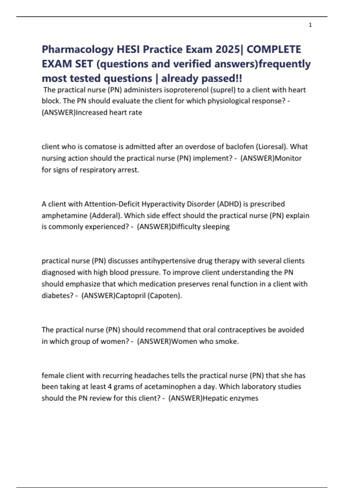 Pharmacology HESI Practice Exam 2025| COMPLETE