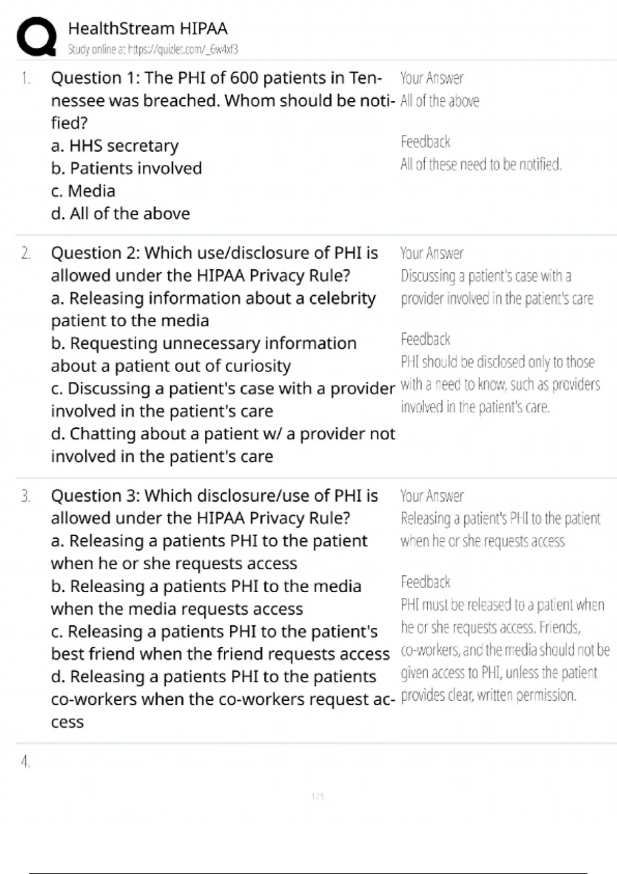 Ace your HealthStream HIPAA compliance exam with our 2025 updated test bank. This comprehensive resource covers patient privacy rules, protected health information (PHI) handling, security standards, breach notification protocols, and healthcare compliance regulations. Prepare with scenario-based practice questions, real-world privacy challenges, and compliance exercises that reflect HealthStream's training standards. Master HIPAA regulations to ensure patient confidentiality and achieve a 100% score on your certification exam.